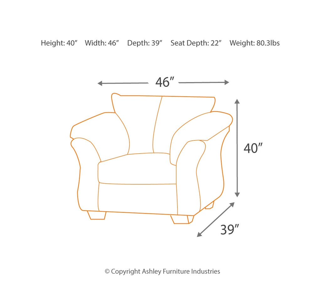 Talk about fine lines and great curves. That’s the beauty of this standout chair—made to suit your appreciation for simplicity and love of contemporary style. A striking flared frame, comfy pillow top armrests and an ultra-soft upholstery that holds up to everyday living complete this fashion statement. | Product Features