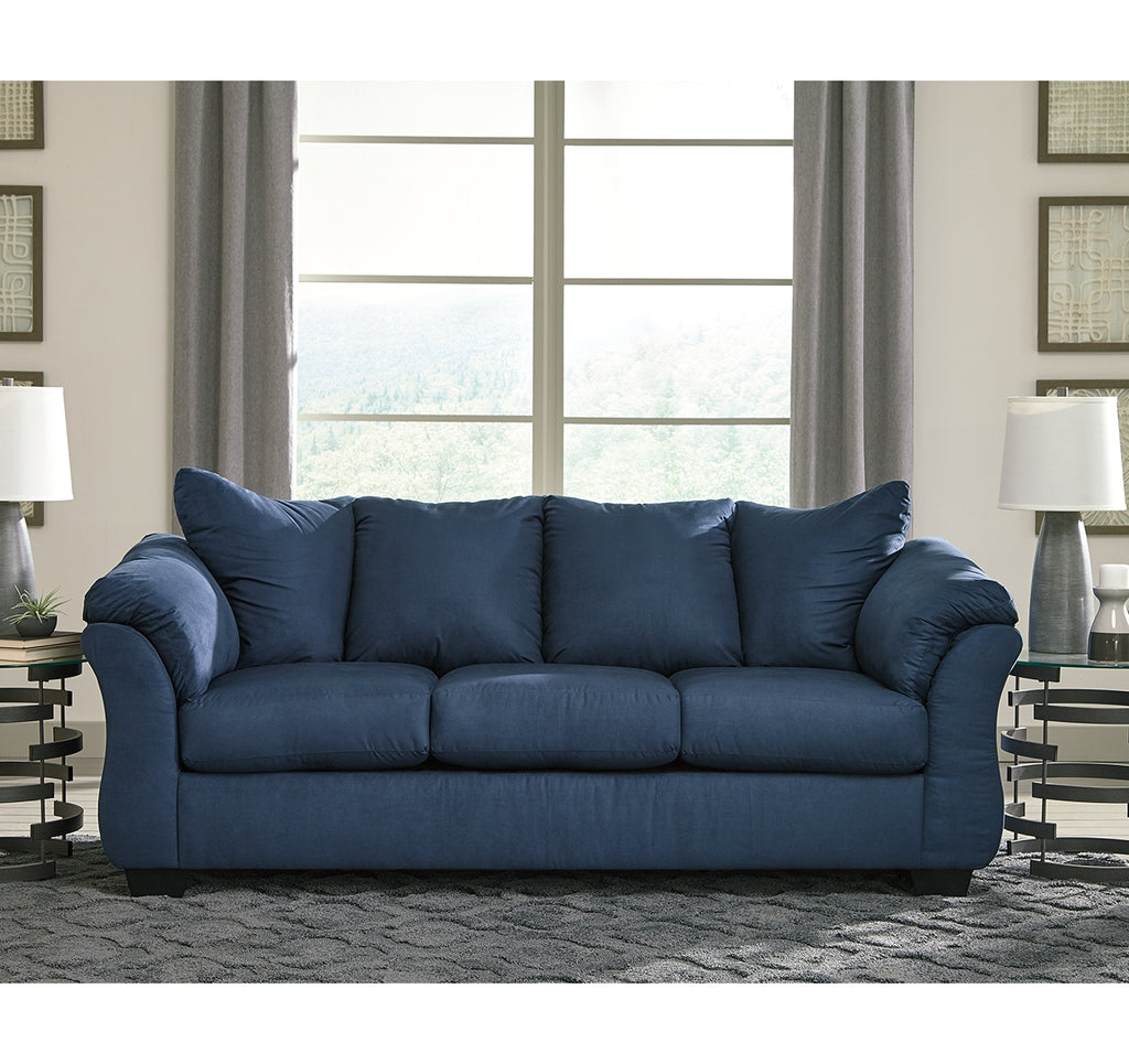 Talk about fine lines and great curves. That’s the beauty of this standout sofa—made to suit your appreciation for clean, contemporary style. A striking flared frame, comfy pillow top armrests and an ultra-soft upholstery that holds up to everyday living complete this fashion statement. | Product Features