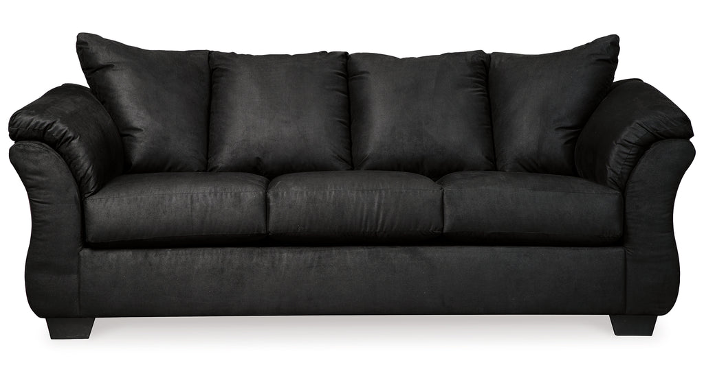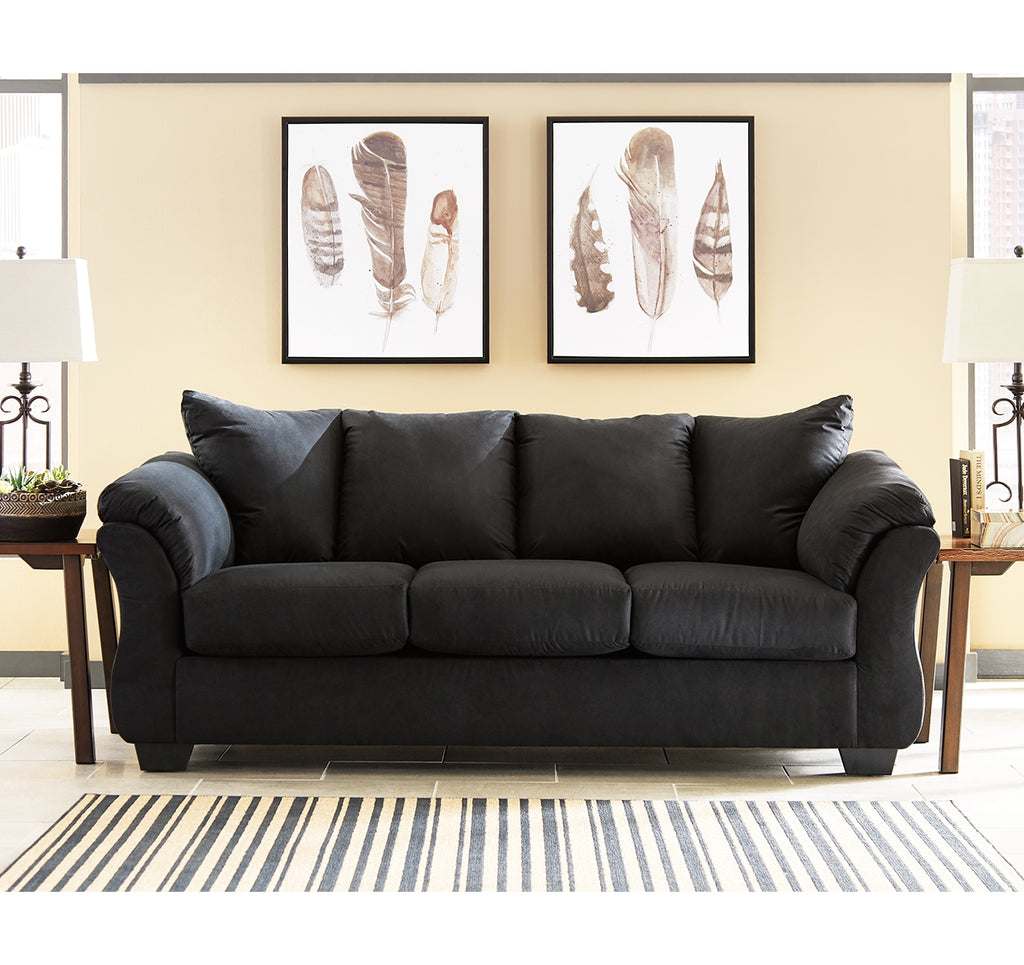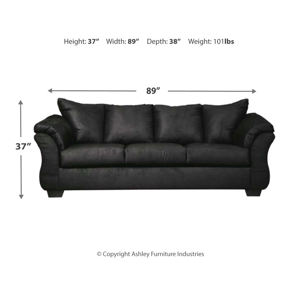 Talk about fine lines and great curves. That’s the beauty of this standout sofa—made to suit your appreciation for clean, contemporary style. A striking flared frame, comfy pillow top armrests and an ultra-soft upholstery that holds up to everyday living complete this fashion statement. | Product Features
