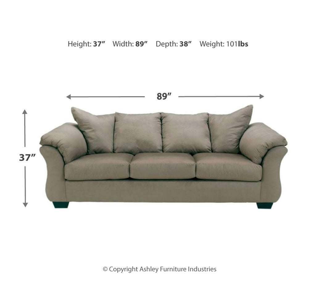 Talk about fine lines and great curves. That’s the beauty of this standout sofa—made to suit your appreciation for clean, contemporary style. A striking flared frame, comfy pillow top armrests and an ultra-soft upholstery that holds up to everyday living complete this fashion statement. | Product Features