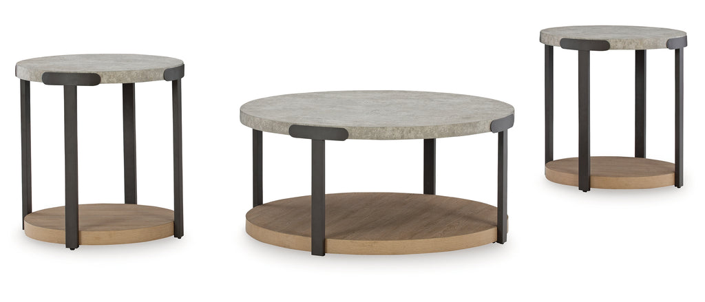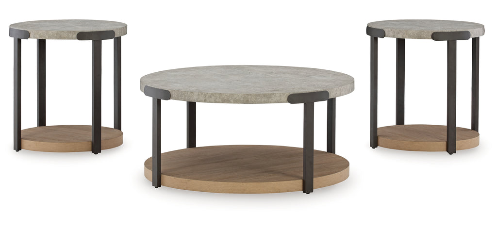 A living room essential, occasional tables are perfect for keeping your snacks close and design books displayed. So why settle for a traditional design when you can mix it up a little? This table set showcases a clean-lined round silhouette, founded atop an open shelf base with a light natural oak wood grain look. The thick tabletop adds modern appeal—perfect for placing in contemporary surroundings. | Product Features