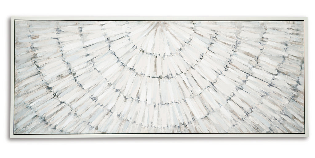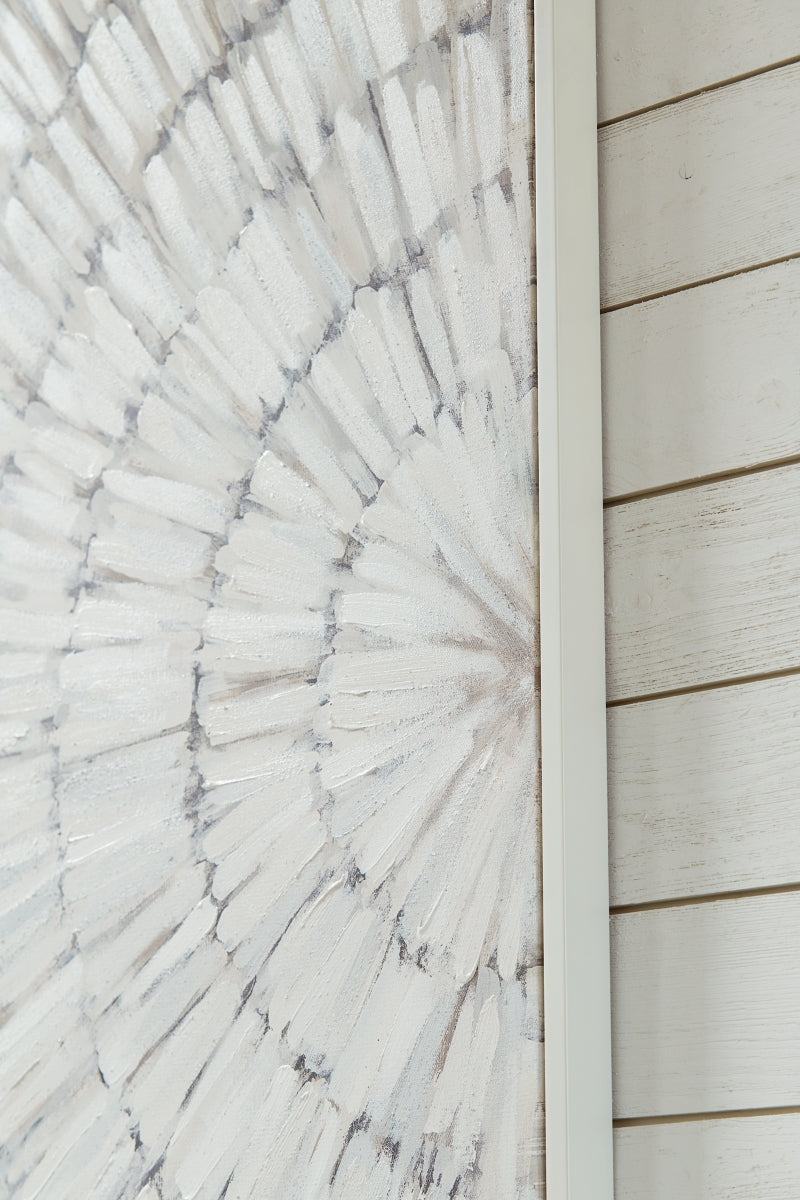 Bring a burst of brilliant-yet-subtle style to your space with this wall art. The abstract design has an almost three-dimensional quality, with paint strokes in soft shades of taupe, gray and white creating a textural look. Eye-catchingly modern, it's an ideal finishing touch to your contemporary den or office. | Product Features