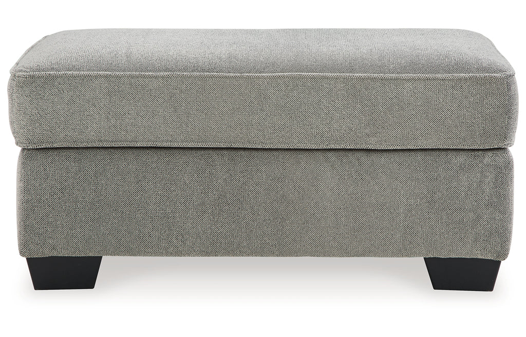 Stealing the show in on-trend, wonderfully plush upholstery, this ottoman takes center stage with its comfort and contemporary look. A clean, high-design look gives this piece standout character. Sit back and relax in clean, cool style anywhere and everywhere you please with this striking footrest. | Product Features