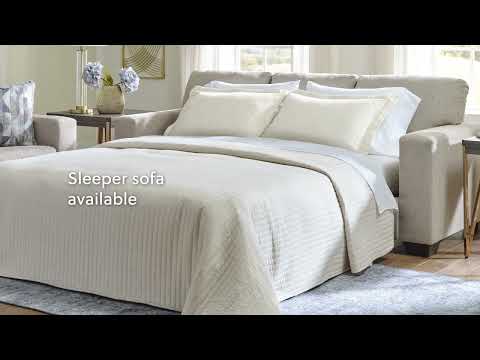 You’re in for a neat treat with this sofa. Its comfy seats are covered in soft, textural upholstery, and the wide track arms are eager to support your quest for total relaxation. Distressed abstract toss pillows bring a fresh breath of contemporary style while accentuating the sofa's color.