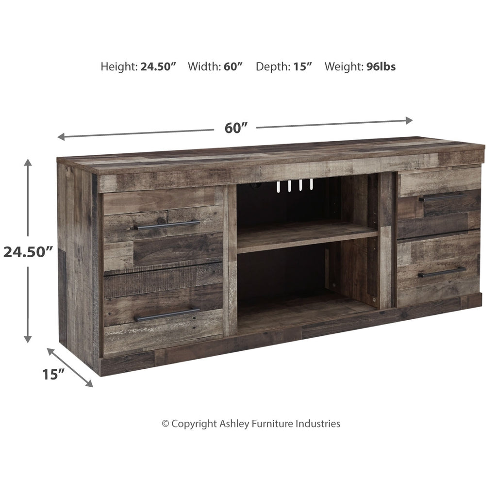 Make this TV stand with fireplace option the center of attention with its urban eclectic style. Its rustic finish over a replicated pine grain creates an authentic natural look for your home entertainment area. You'll love its functionality. Open and closed-door storage with adjustable shelving accommodates media needs. | Product Features
