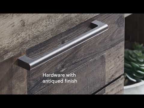 - Pulls in antiqued gunmetal finish