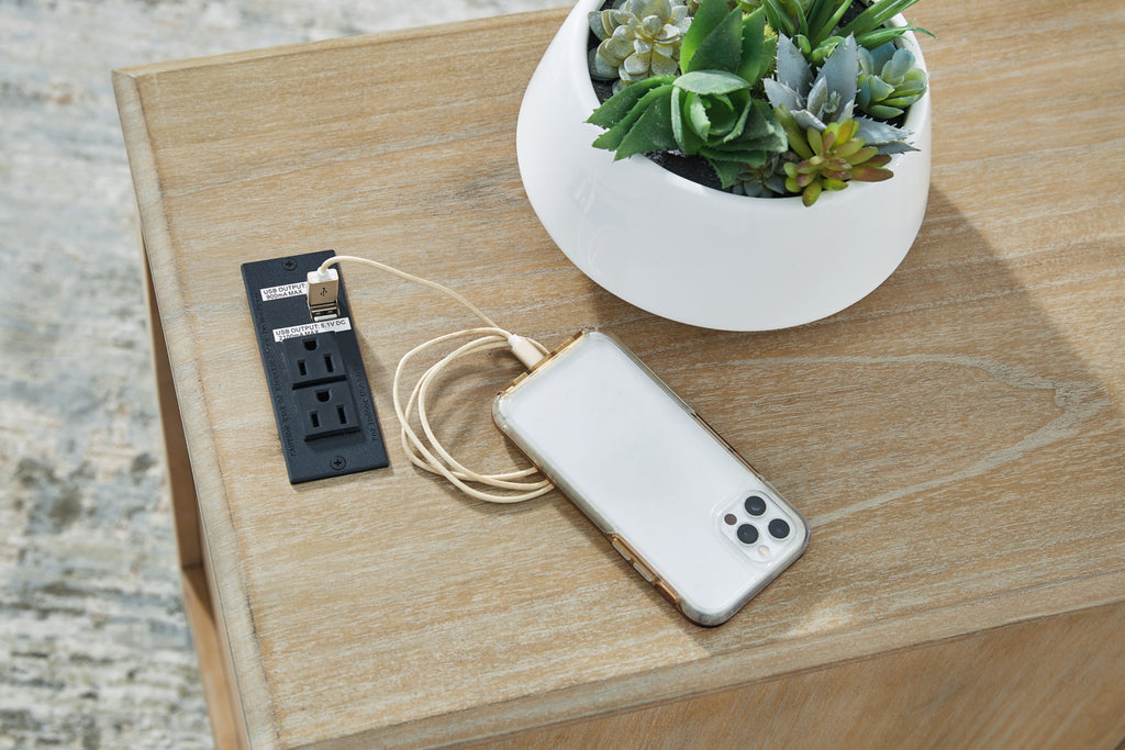 This end table is a simply stunning exhibition of sofa-side function. Your daily routines are upgraded with USB charging and a handy pull-out tray to keep remotes and beverages close at hand. Seeking extra storage? This table is ready to accommodate. Intentionally made for casual lifestyles, it’s an instant everyday essential. | Product Features