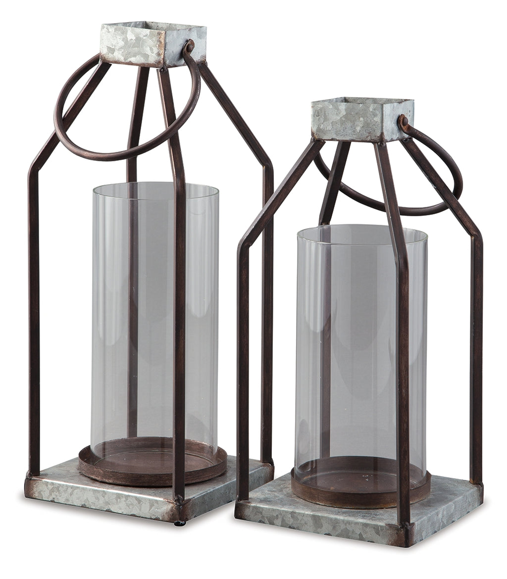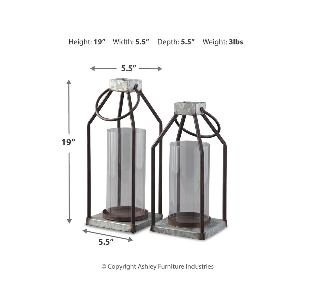 Whoever said you couldn’t illuminate in style? This set of lanterns act as beautiful vessels for the romantic glow of pillar candles, whether placed in an indoor or outdoor space. The galvanized metal offers decor versatility, and the top metal handle and glass hurricane shade make it oh-so-easy to transport. | Product Features