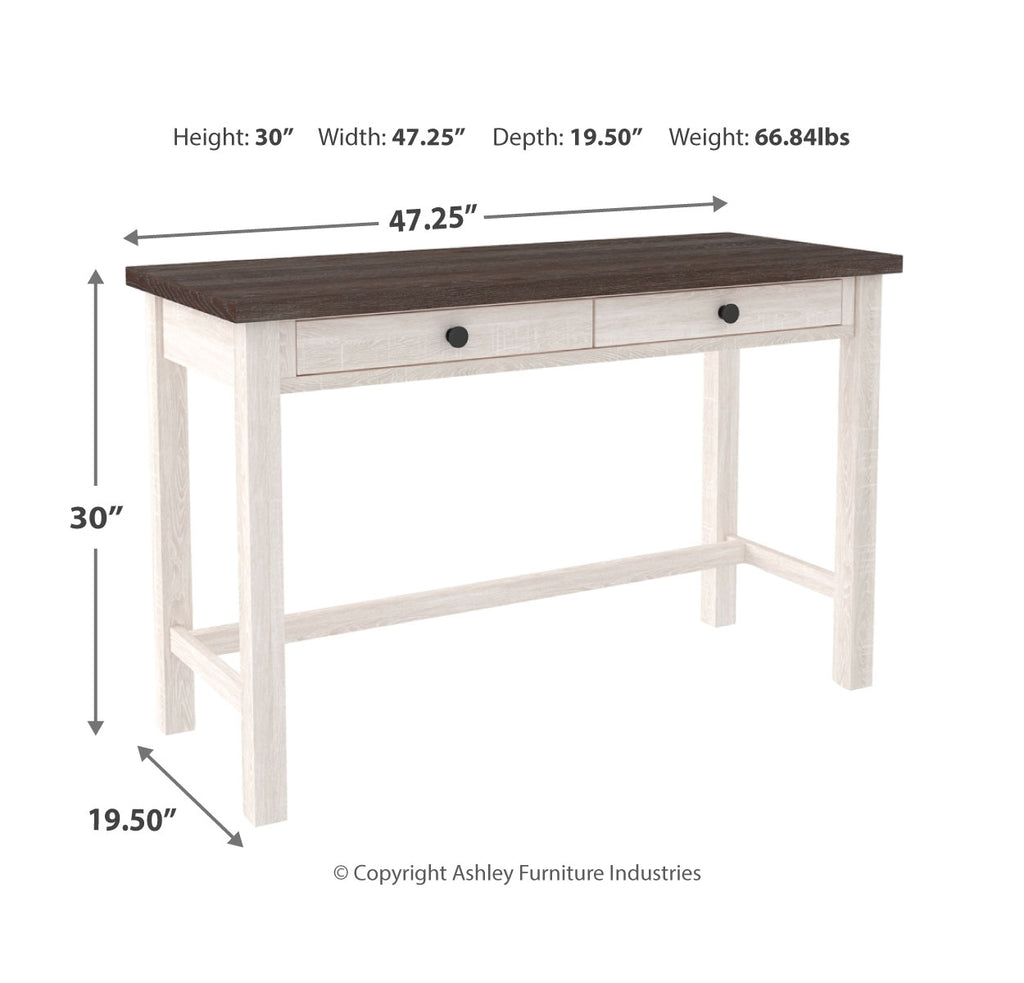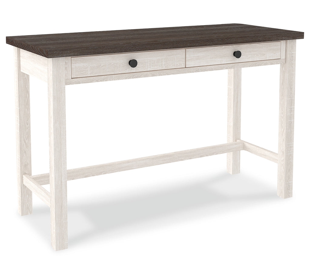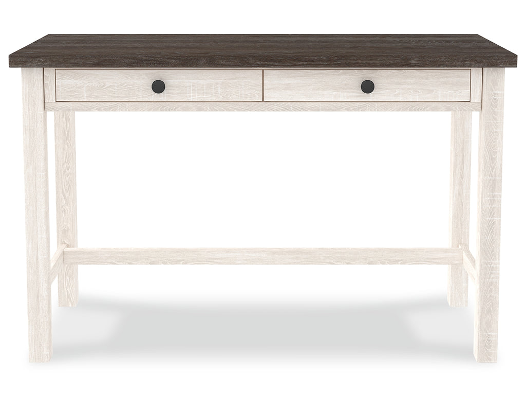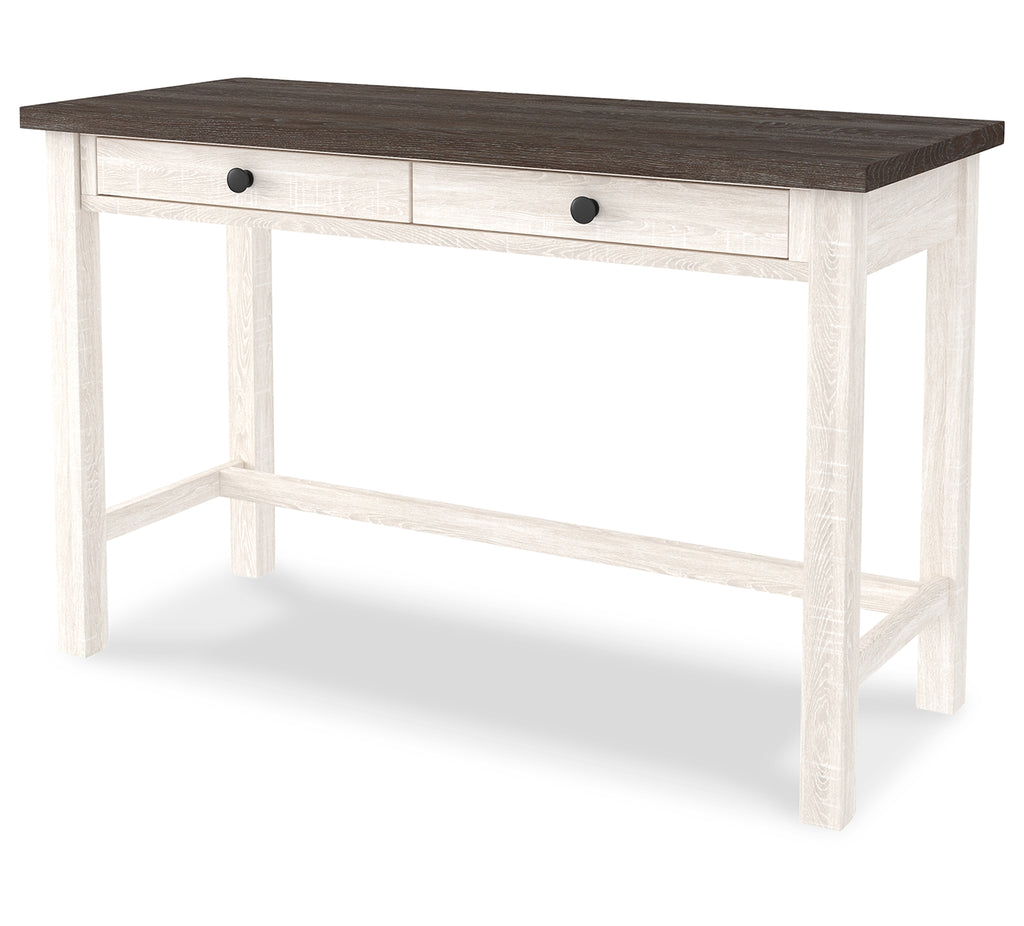 More than just a beauty to behold, this home office 2-drawer desk is designed to raise your productivity by packing more work area into less space. Sporting a replicated gray wood top with an antiqued white base, it’s ready to take a cool stance for modern farmhouse style. Pair with the file cabinet or bookcase (each sold separately) for a well-organized home office. | Product Features