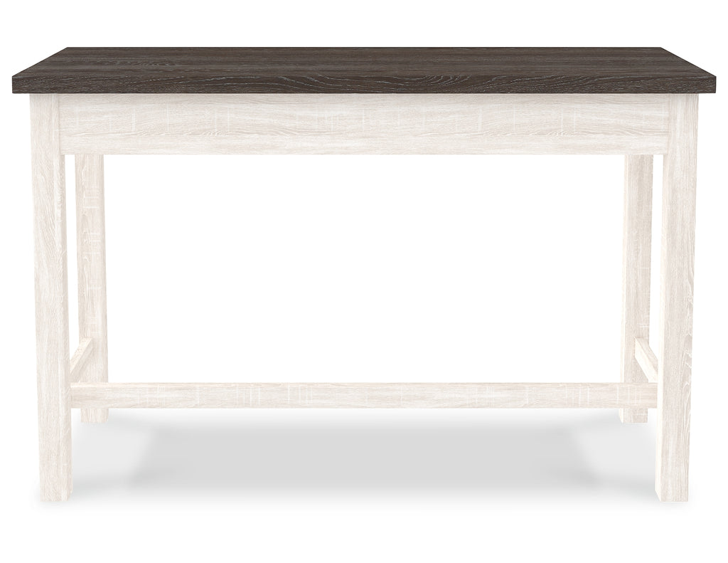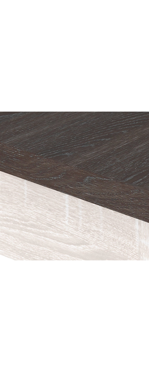 - Two-tone treatment; replicated gray wood top with antiqued white base