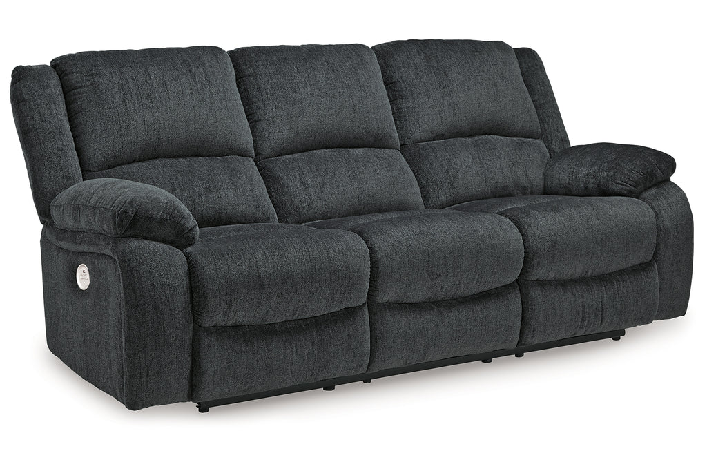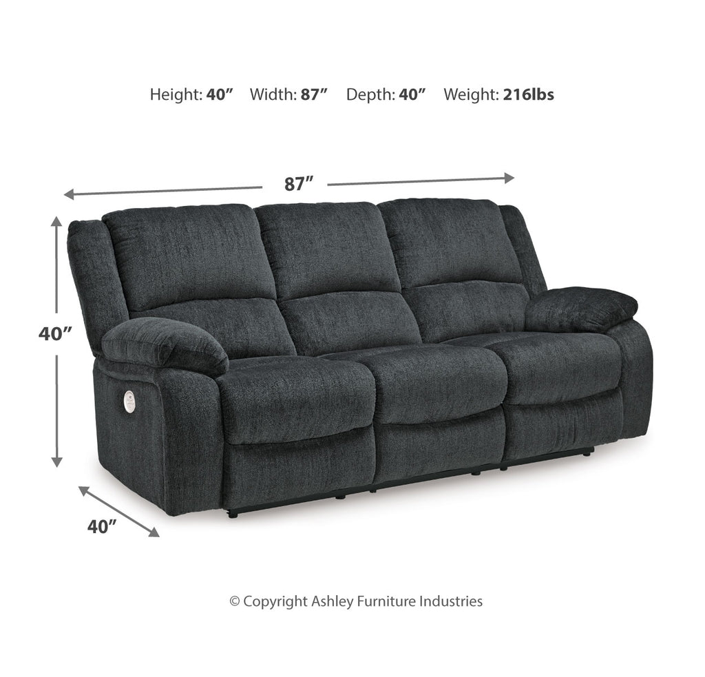 Built for luxury, this power reclining sofa lets you kick back in reliable style. The thick, softly textured chenille upholstery provides a comfy surface on which to lounge. With bustle back construction and thickly cushioned armrests, this piece gives you the dependable support you need to unwind while the handy USB port provides the power to keep your devices going. | Product Features