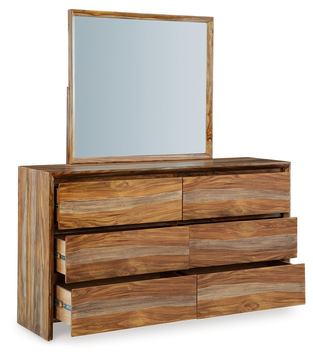 Discover something extraordinary with this clean-lined dresser and mirror. The rich natural beauty of the wood, enhanced with a clear wood-tone finish, brings an organically stunning vibe to your bedroom. Strikingly simple drawers lend a hand with keeping your wardrobe in check and conquering clutter. And the mirror ensures that you’ll look fabulous from every angle.