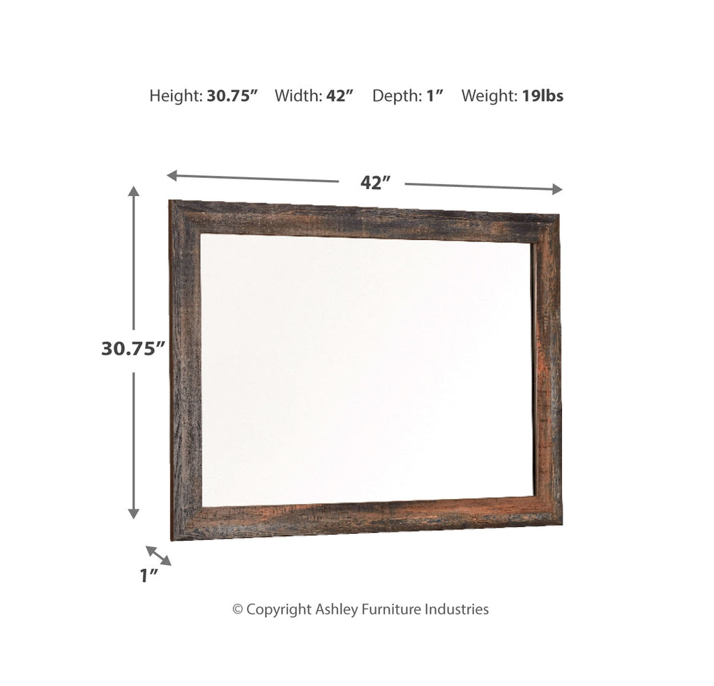 When merged in just the right way, rustic and industrial styles can make one happy marriage. Case in point: this mirror. A refined take on barn board beauty, its complex, replicated wood grain showcases hints of burnt orange and teal tones for a sense of weatherworn authenticity. Shake things up by hanging this mirror either vertically or horizontally. | Product Features