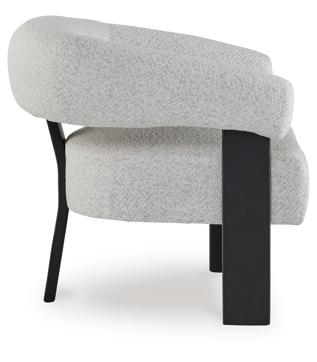 Almost sculptural in design, this accent chair is a standout addition to your seating area. Its artistic form speaks to your eye for unique contemporary design, while the ultra-soft fabric encourages an indulgent lounging experience. In contrasting black and white hues, the trend-forward chair can coexist expertly with existing pieces. Now that’s style to aspire to. | Product Features
