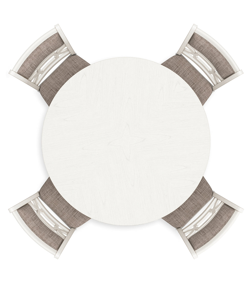 Come together for a delightful dining experience. Chic and relaxed, this counter height dining table and bar stool set effortlessly captivates with its elegant simplicity. The timeless design pairs a crisp white hue with gray textured upholstery. It's a fresh addition everyone will notice. | Product Features