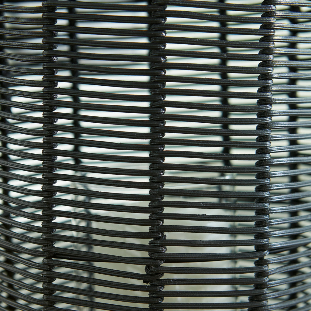 Complete the look of your restful retreat with this homey lantern. Its black faux rattan filters the light of your candle (not included) to give a gentle glow to your space. When not in use, this chic indoor/outdoor piece rounds out your decor with its versatile style.