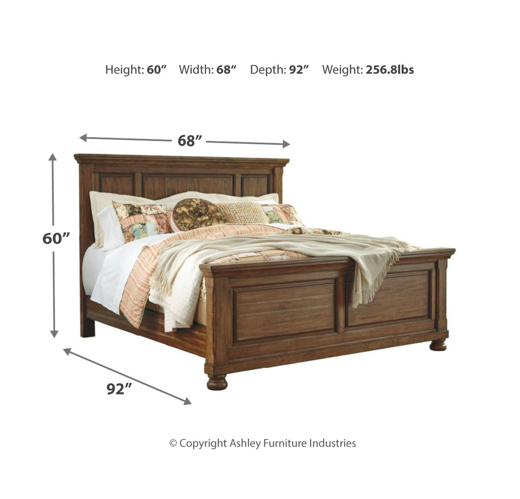 A fresh, new take on traditional style. This queen panel bed meets today’s design tastes with beauty and grace. Tobacco brown finish allows the natural grain of the acacia veneers to show through in an organic way. Profiled crown moulding adds depth to the headboard and footboard. This is a look you can appreciate for years to come. Mattress and foundation/box spring available, sold separately. | Product Features