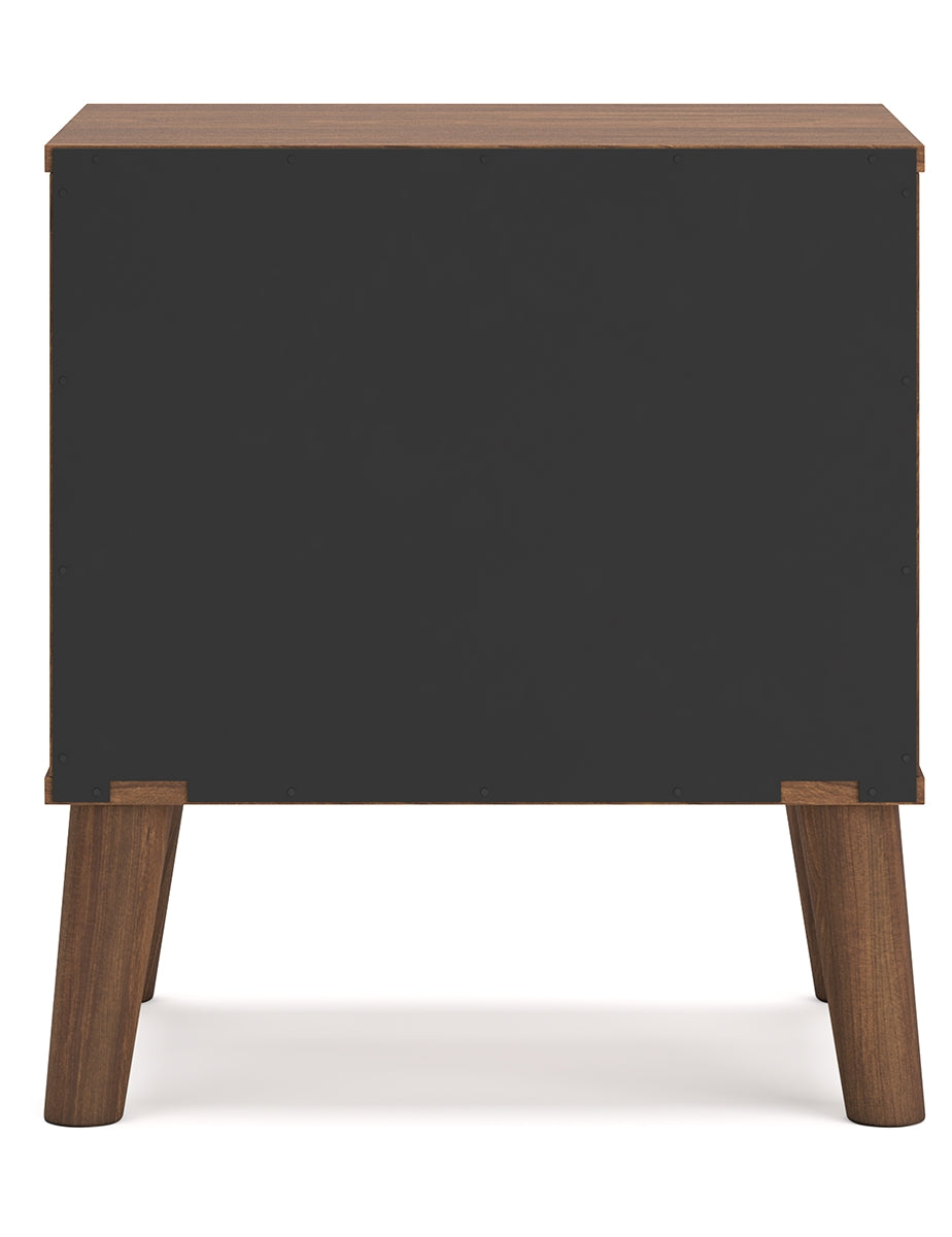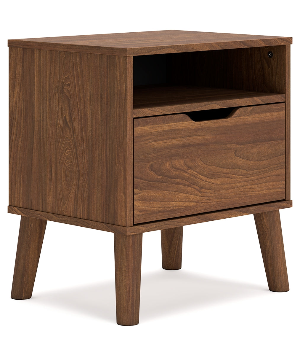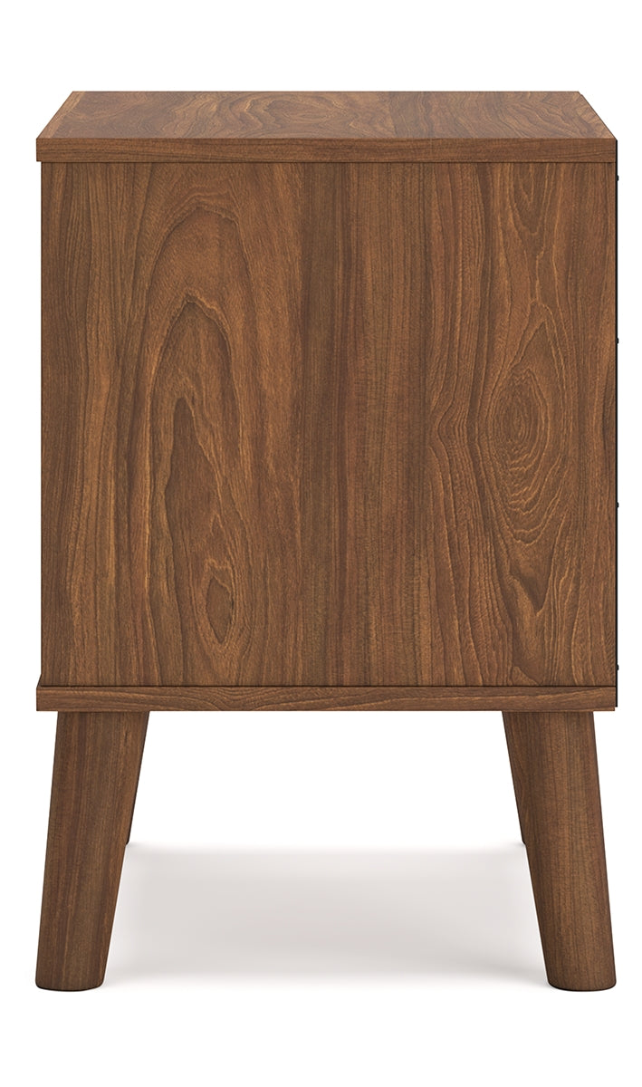 What do you get when you mix a minimalist profile with a warm finish? With sleek simplicity and a rich auburn hue, this nightstand delivers cool, contemporary style with a nod to mid-century modern design. A hardware-free aesthetic and a spacious drawer packed with bedside storage possibilities complete your restful retreat with exceptional form and function. | Product Features