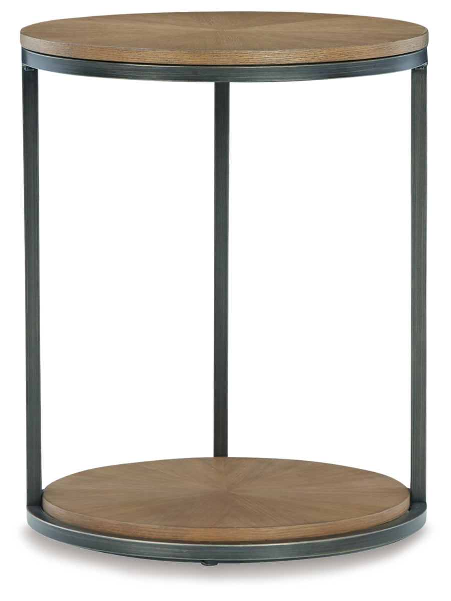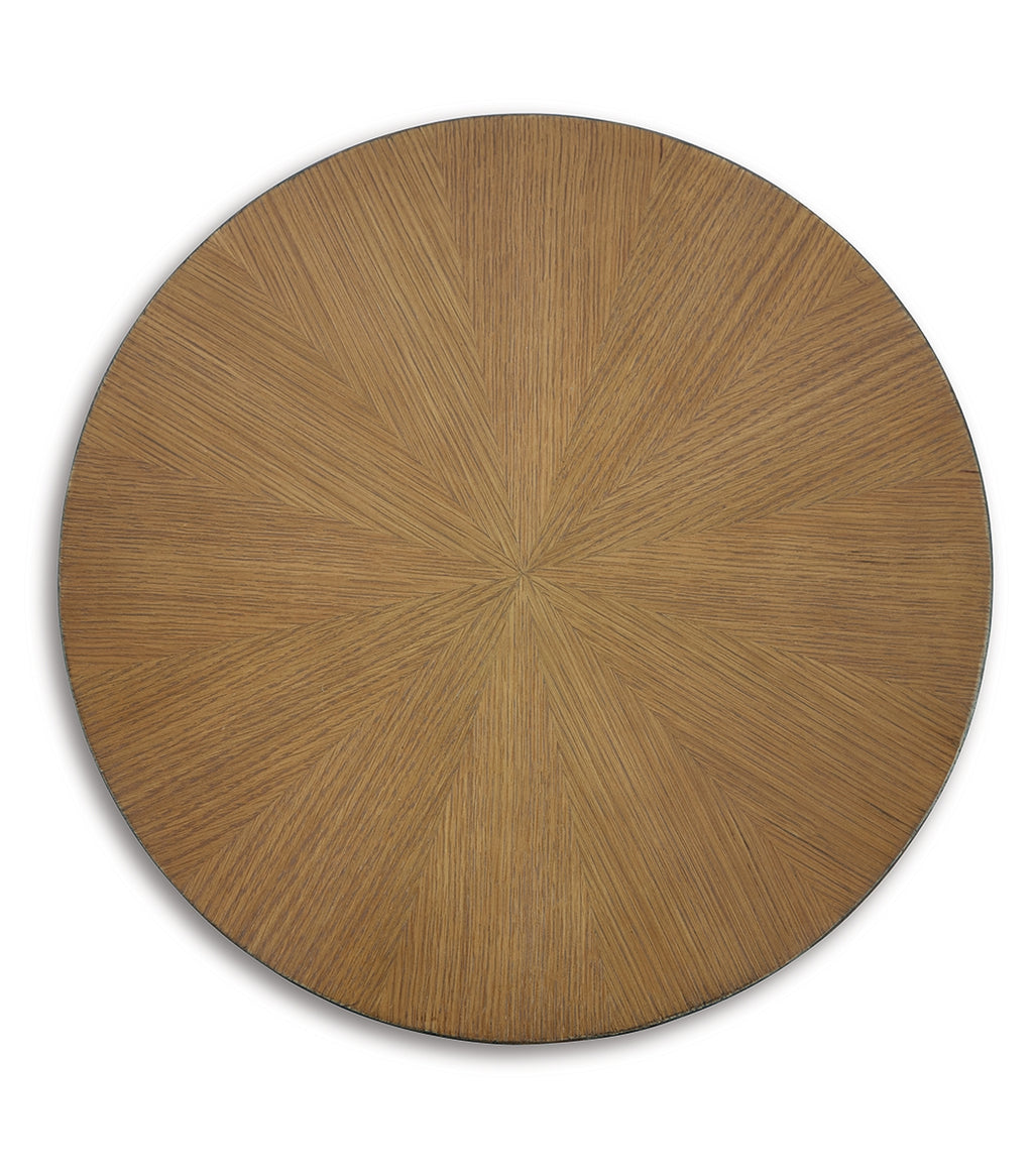 Beautiful to behold, this urban contemporary end table is loaded with high style and convenience. The oak veneer top is enhanced with a striking sunburst pattern, while its simple-yet-stylish tripod design allows it to fit nicely in the smallest spaces. | Product Features