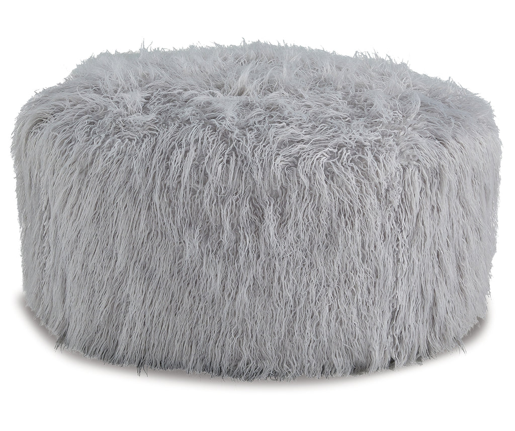 Don't shy away from decadence. Add a bit of bold design to your room with this oversized accent ottoman. The faux fur upholstery has a luxe look, and its casual light gray hue allows this plush piece to make a stylish statement in a variety of spaces.