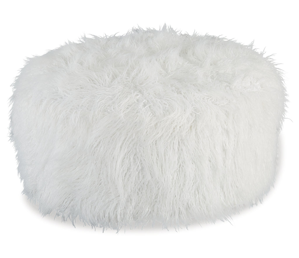 Don't shy away from decadence. Add a bit of bold design to your room with this oversized accent ottoman. The faux fur upholstery has a luxe look, and its casual white hue allows this plush piece to make a stylish statement in a variety of spaces.