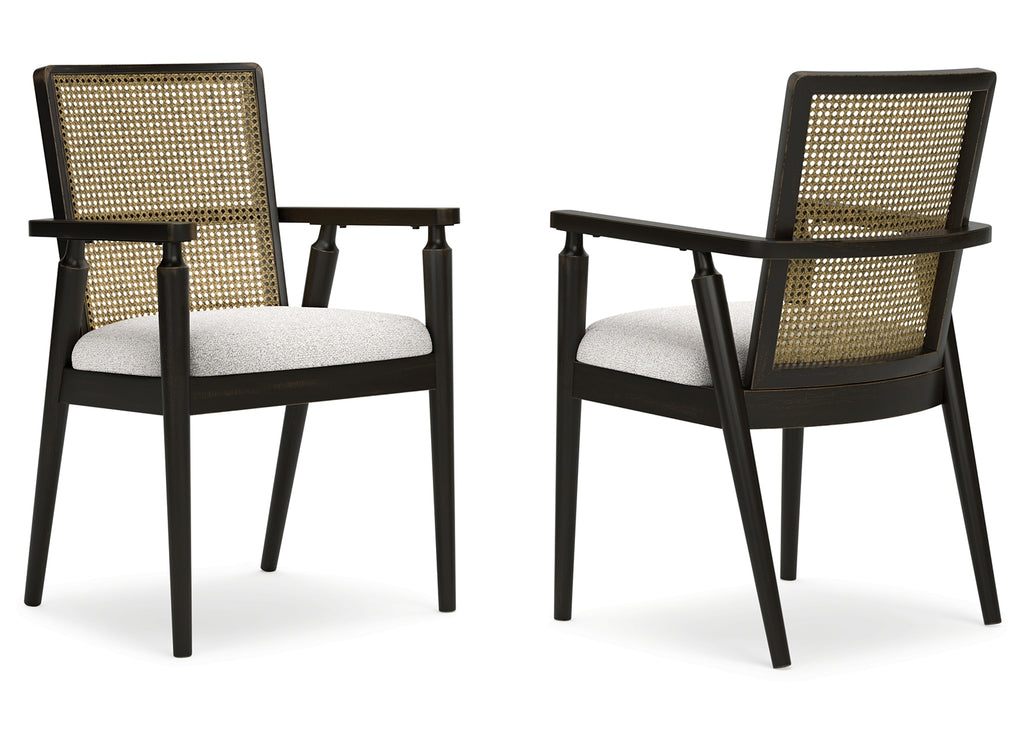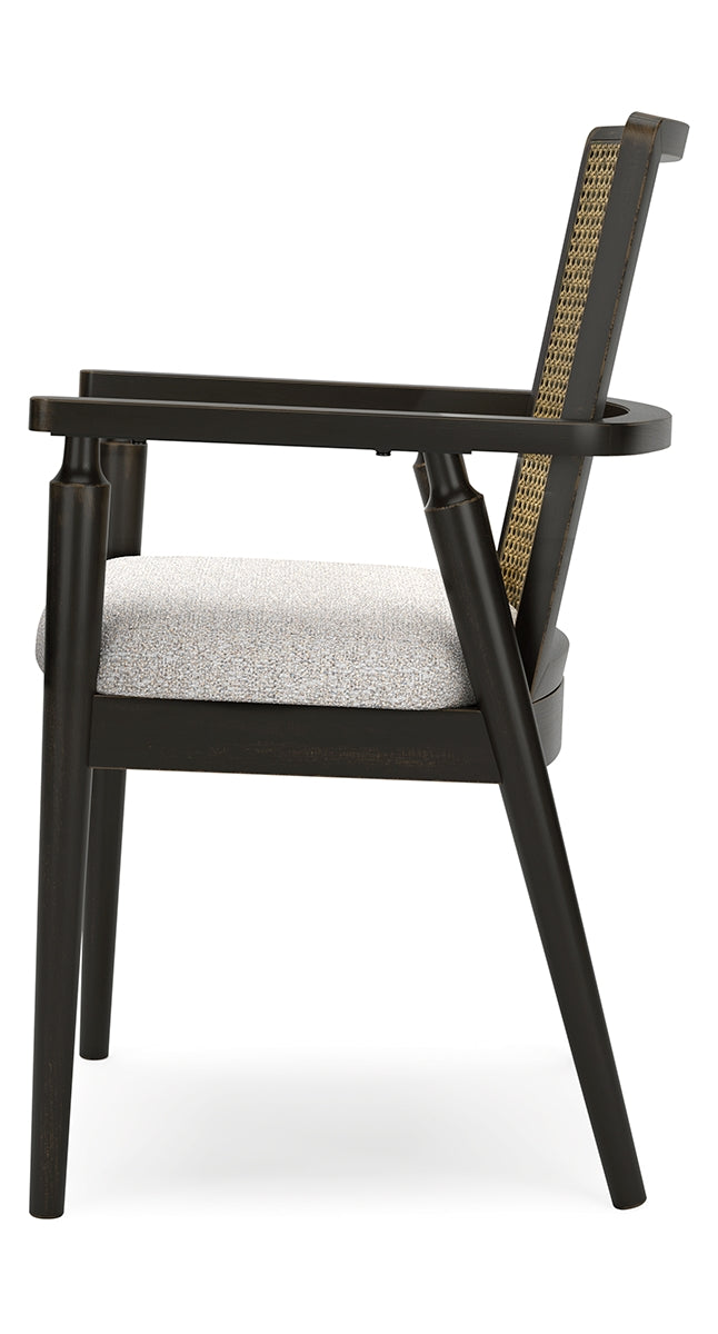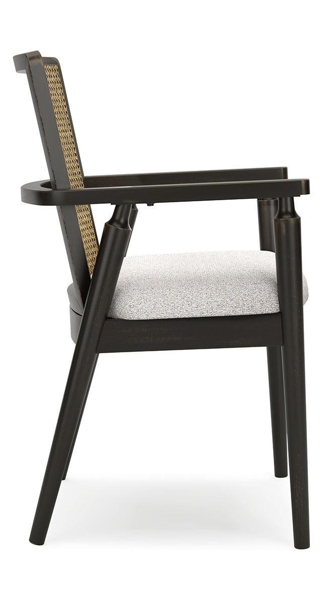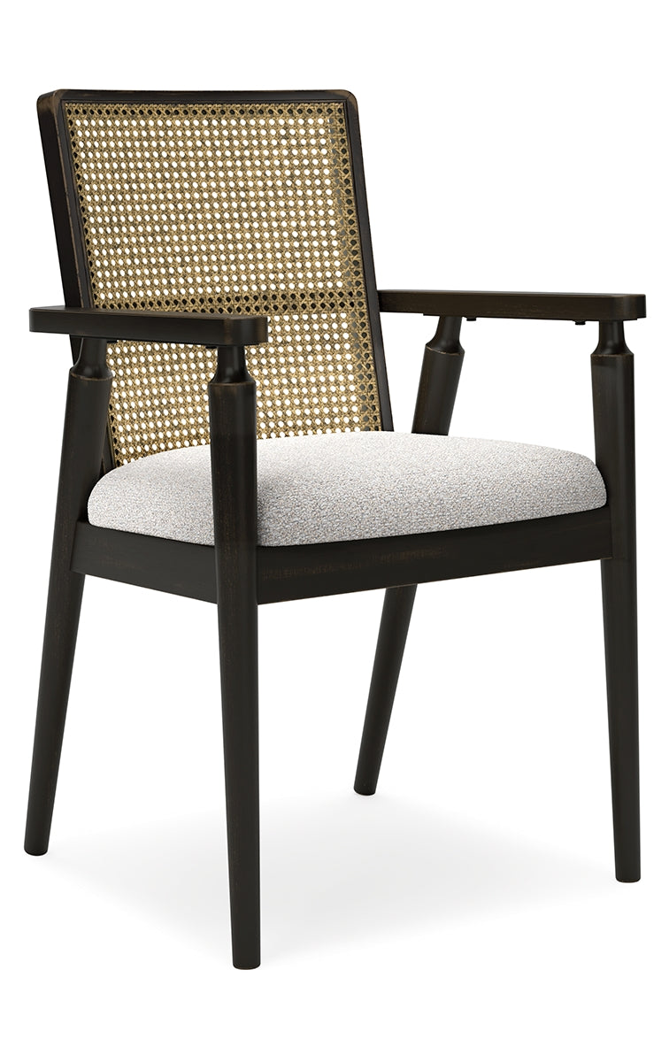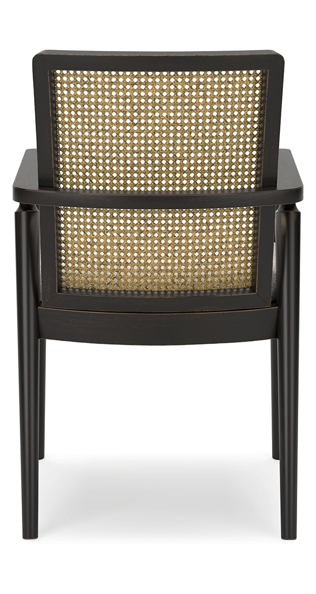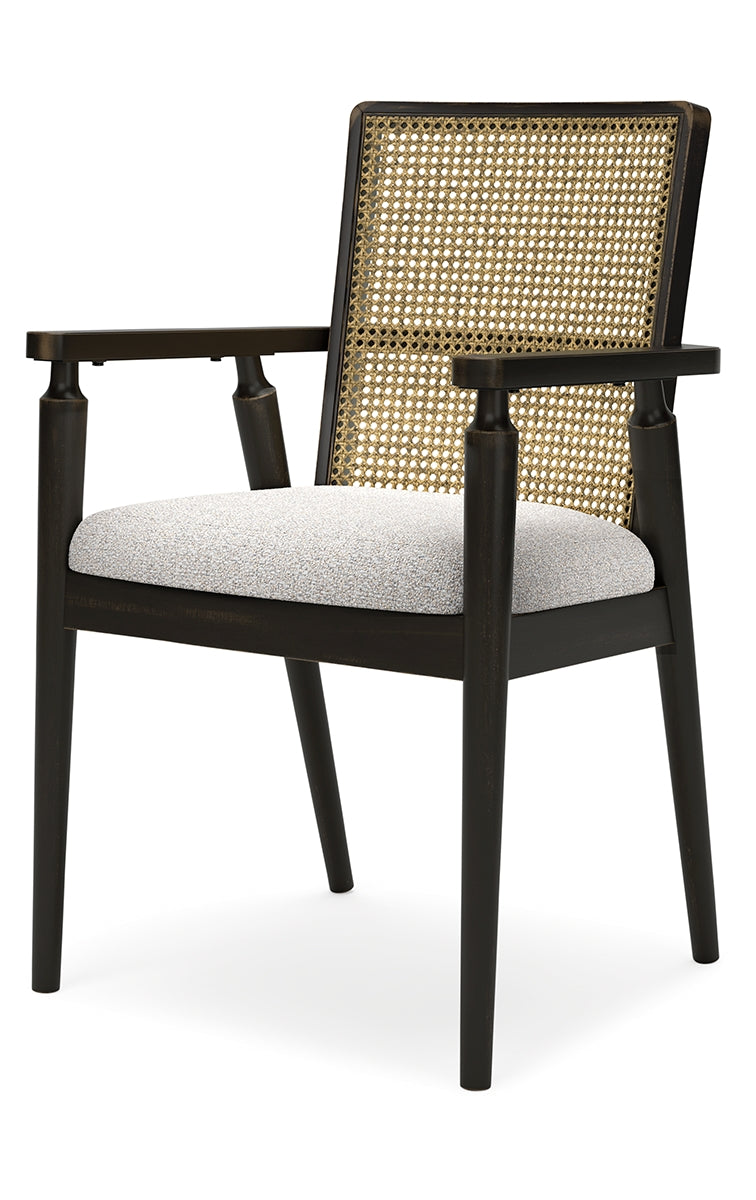 This dining arm chair brings a rustic vibe to urban contemporary design. It’s a modern approach to natural beauty, with a faux cane backrest incorporating eye-catching texture. And the chair’s color palette is stunningly simple, allowing it to coordinate seamlessly with your existing decor. | Product Features