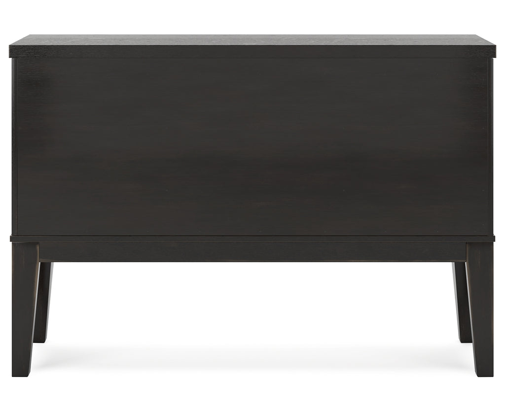 - Center drawer with fully finished interior, felt-lined bottom and ball-bearing side glides