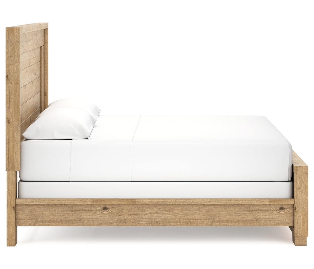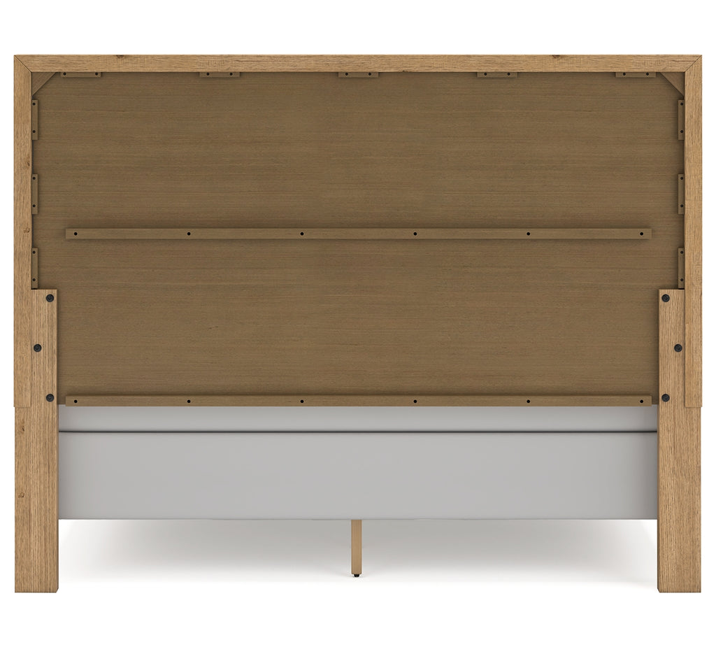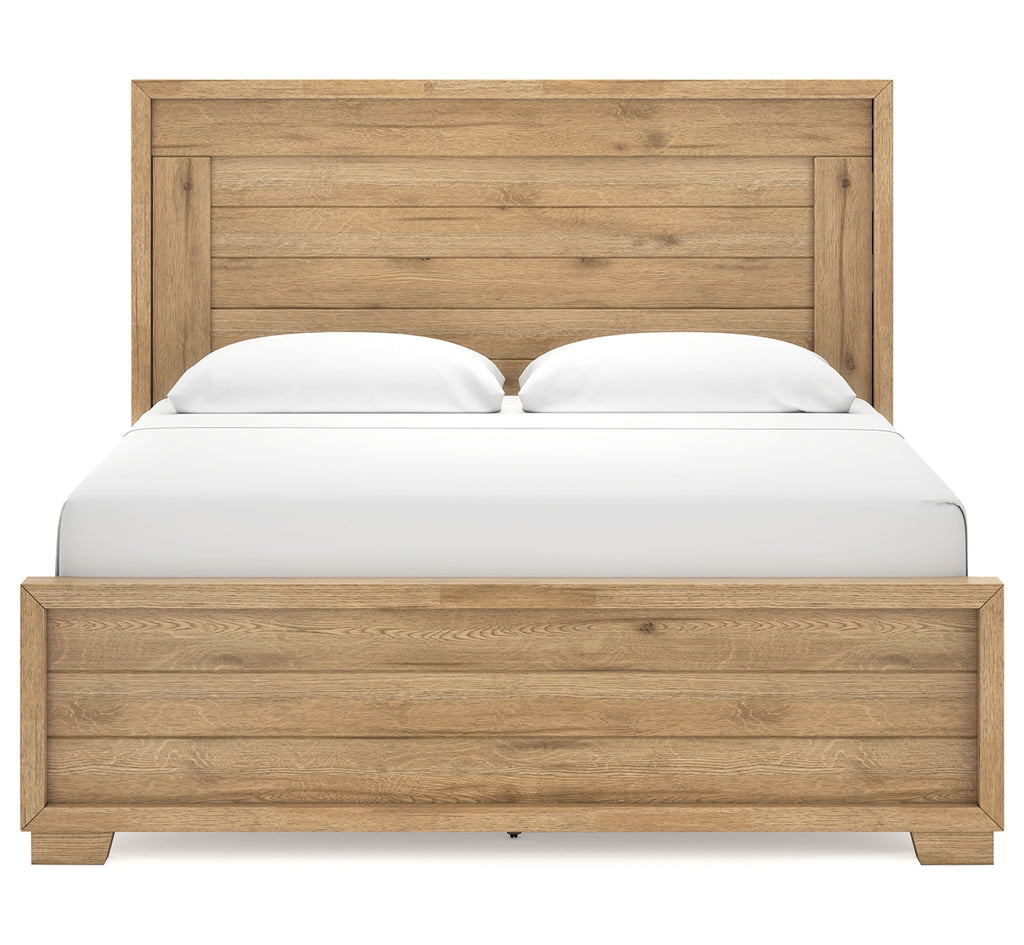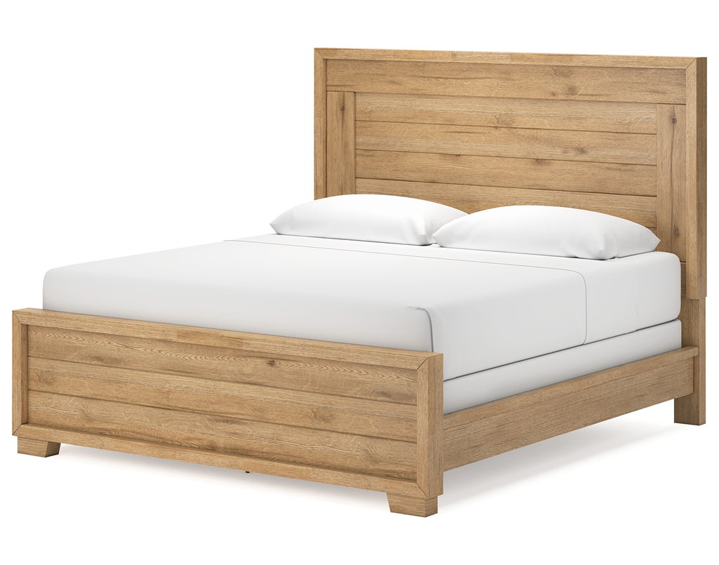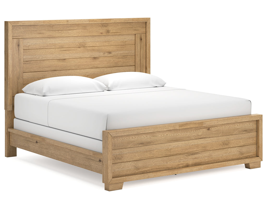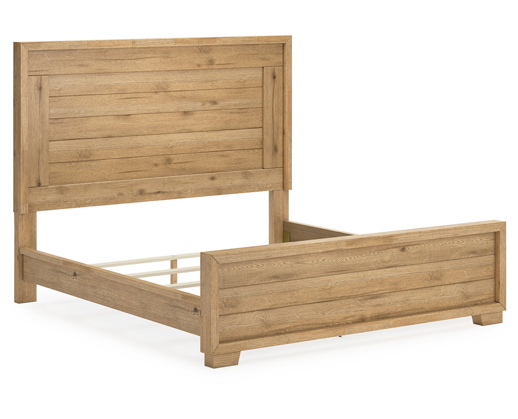This king panel bed expertly refines the raw beauty of wood, bringing a rustic vibe to urban contemporary design. Natural details on the wood, unique to each piece, create an organically beautiful feel in your bedroom. And the stunning simplicity of the materials allows you to seamlessly coordinate this bed with your existing decor. | Product Features