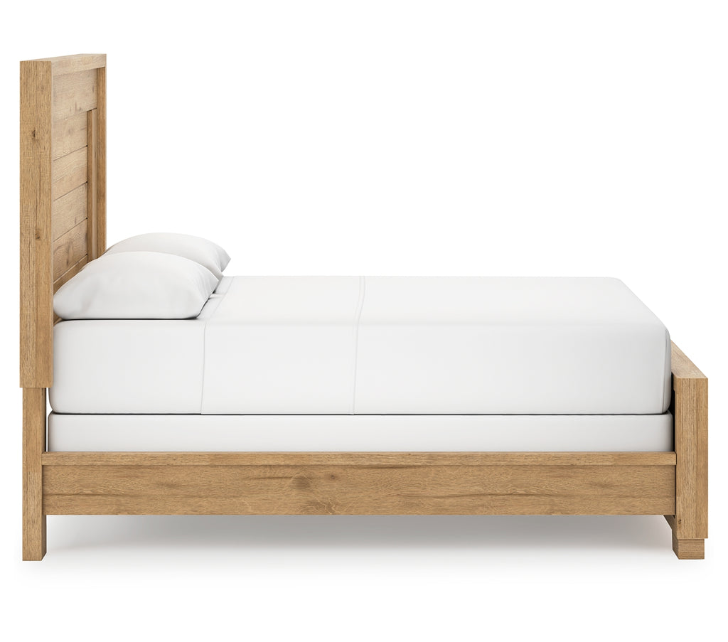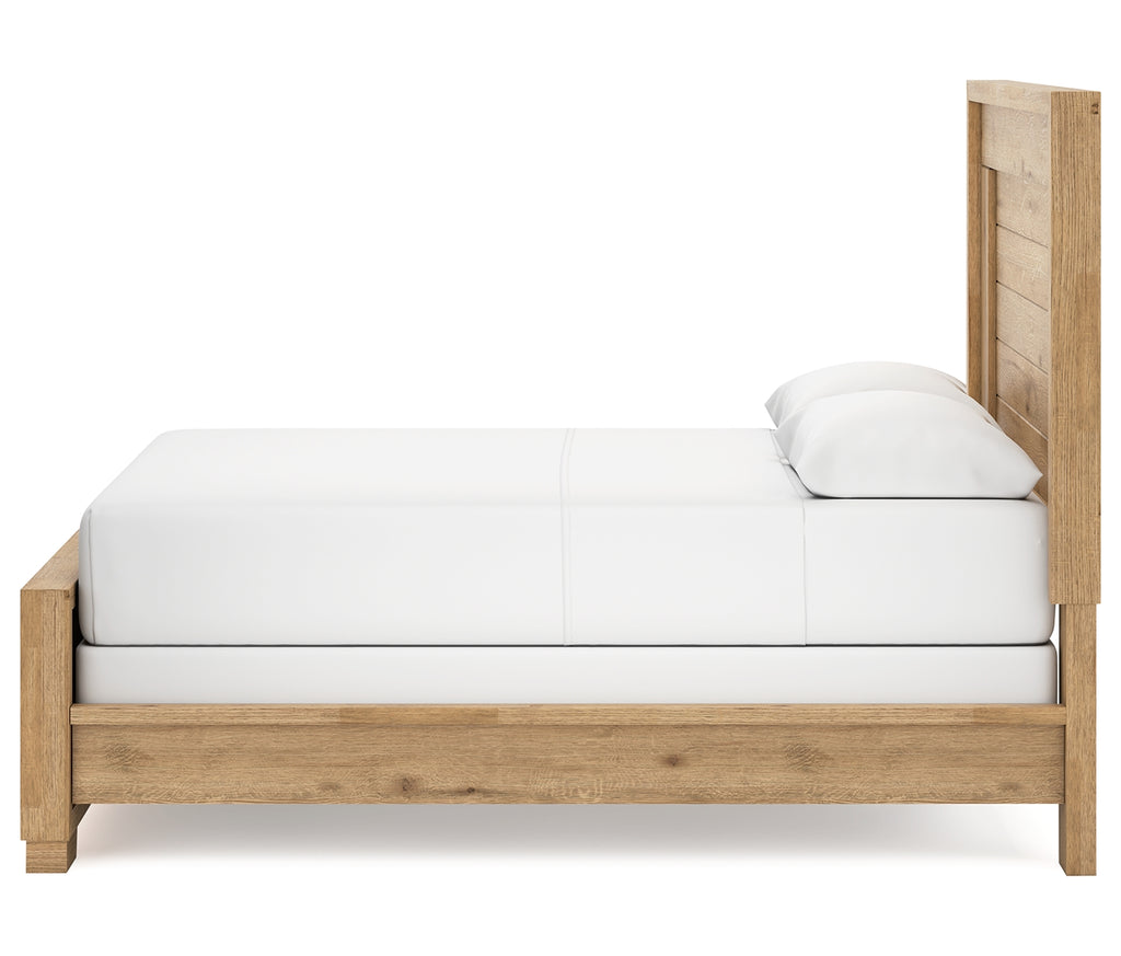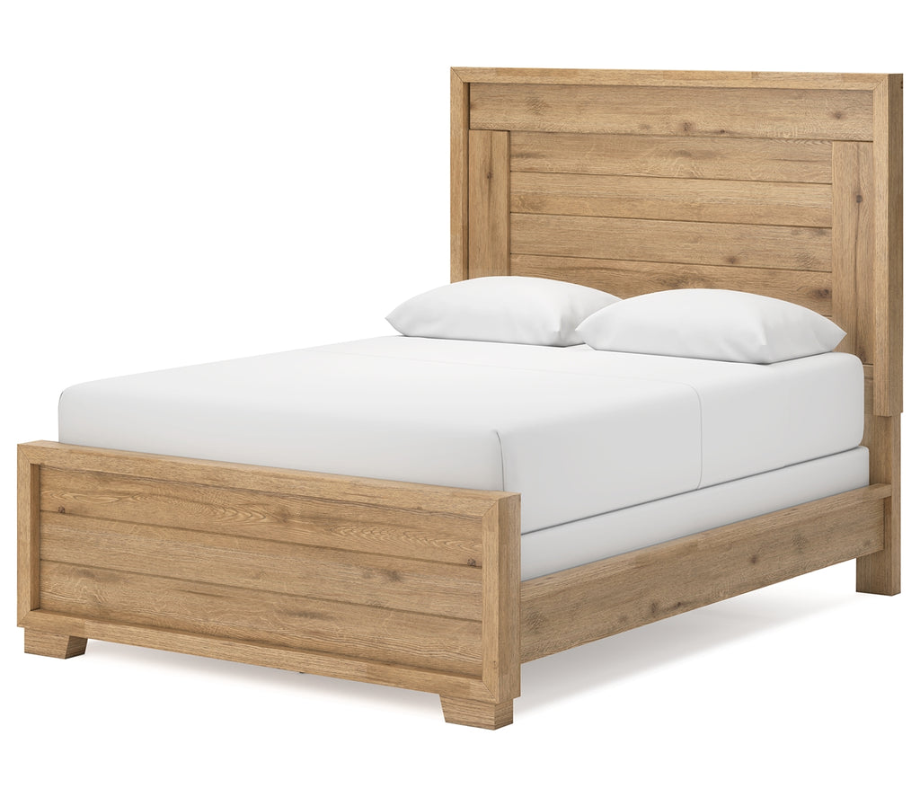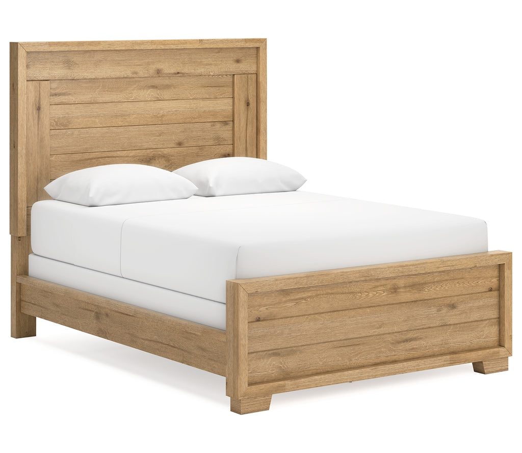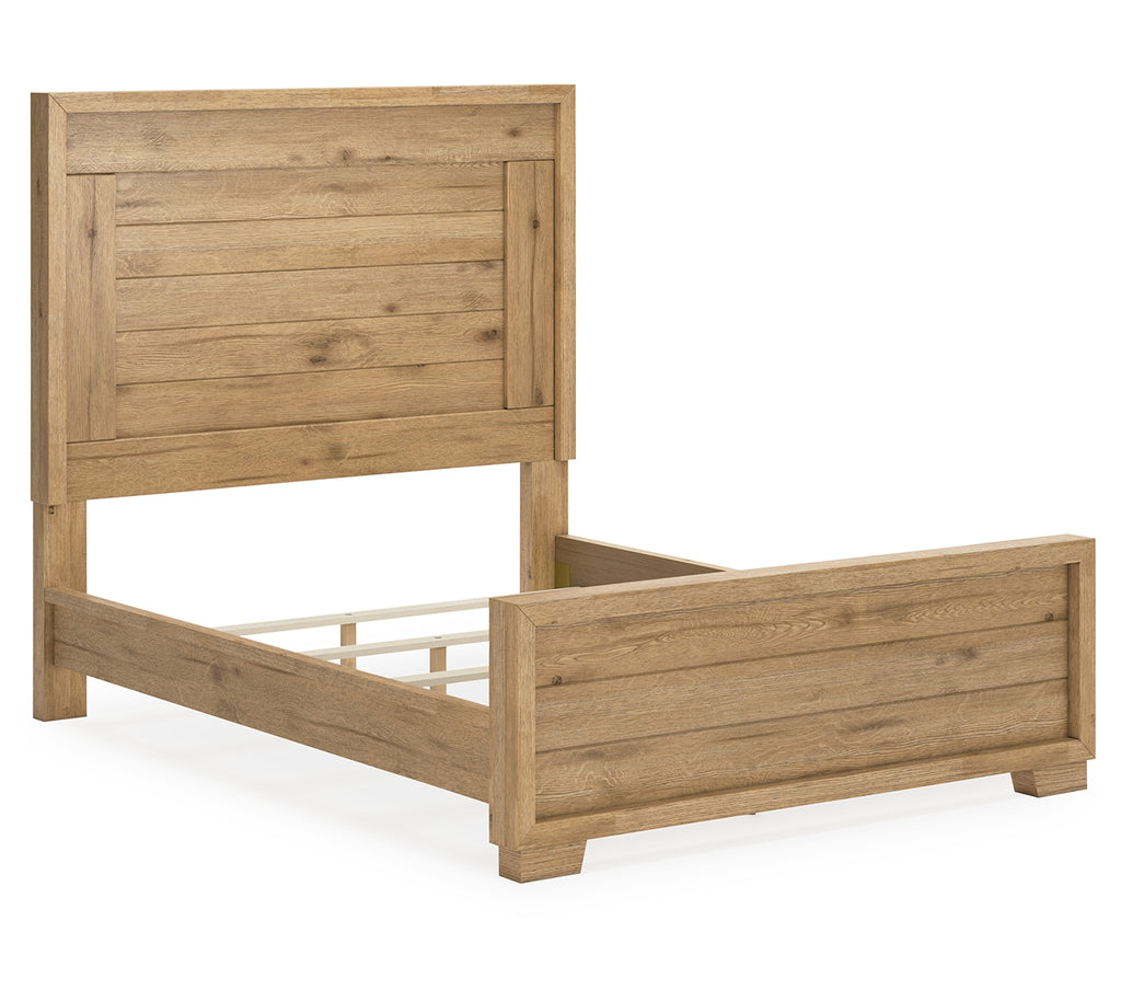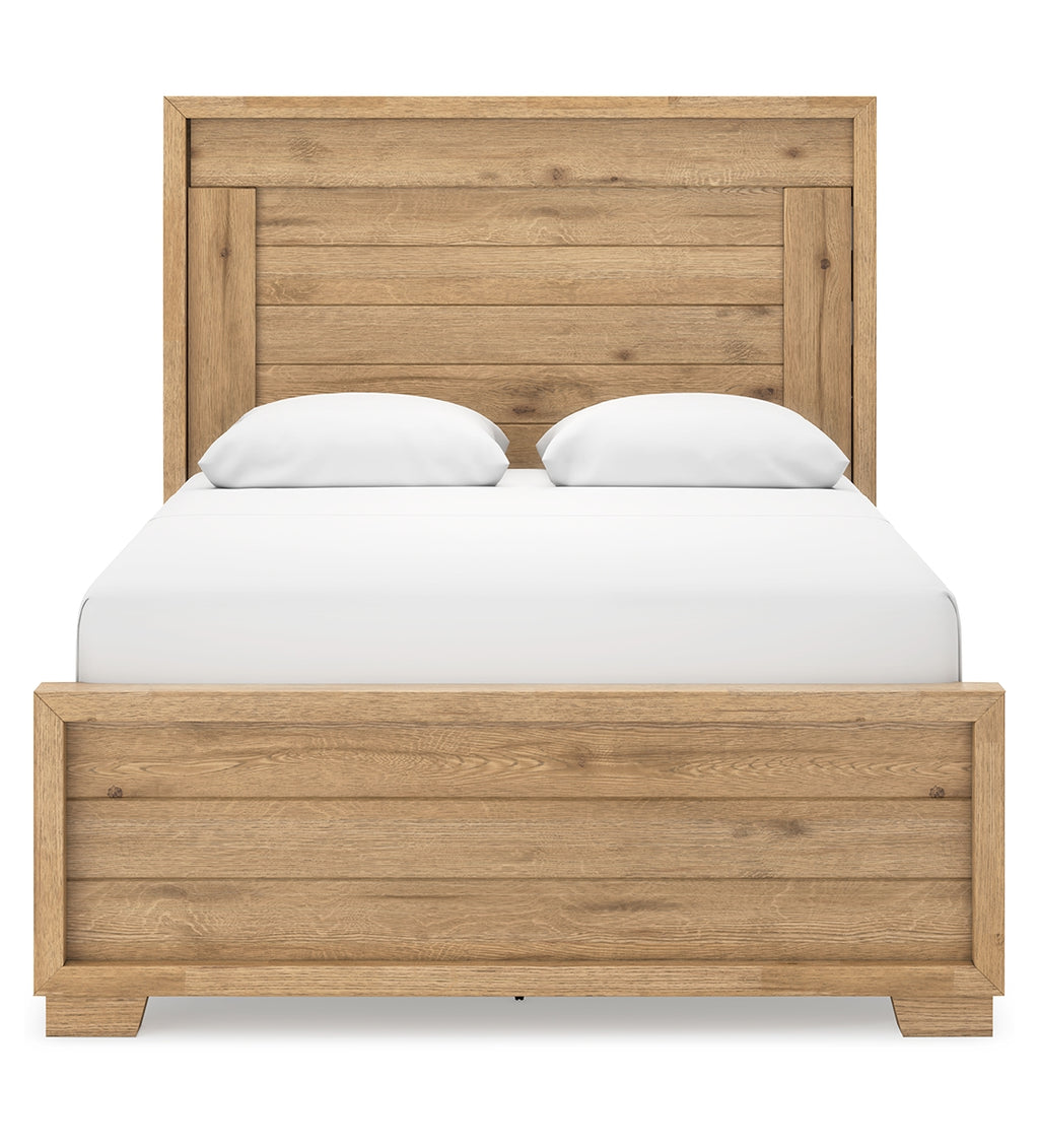 This queen panel bed expertly refines the raw beauty of wood, bringing a rustic vibe to urban contemporary design. Natural details on the wood, unique to each piece, create an organically beautiful feel in your bedroom. And the stunning simplicity of the materials allows you to seamlessly coordinate this bed with your existing decor. | Product Features