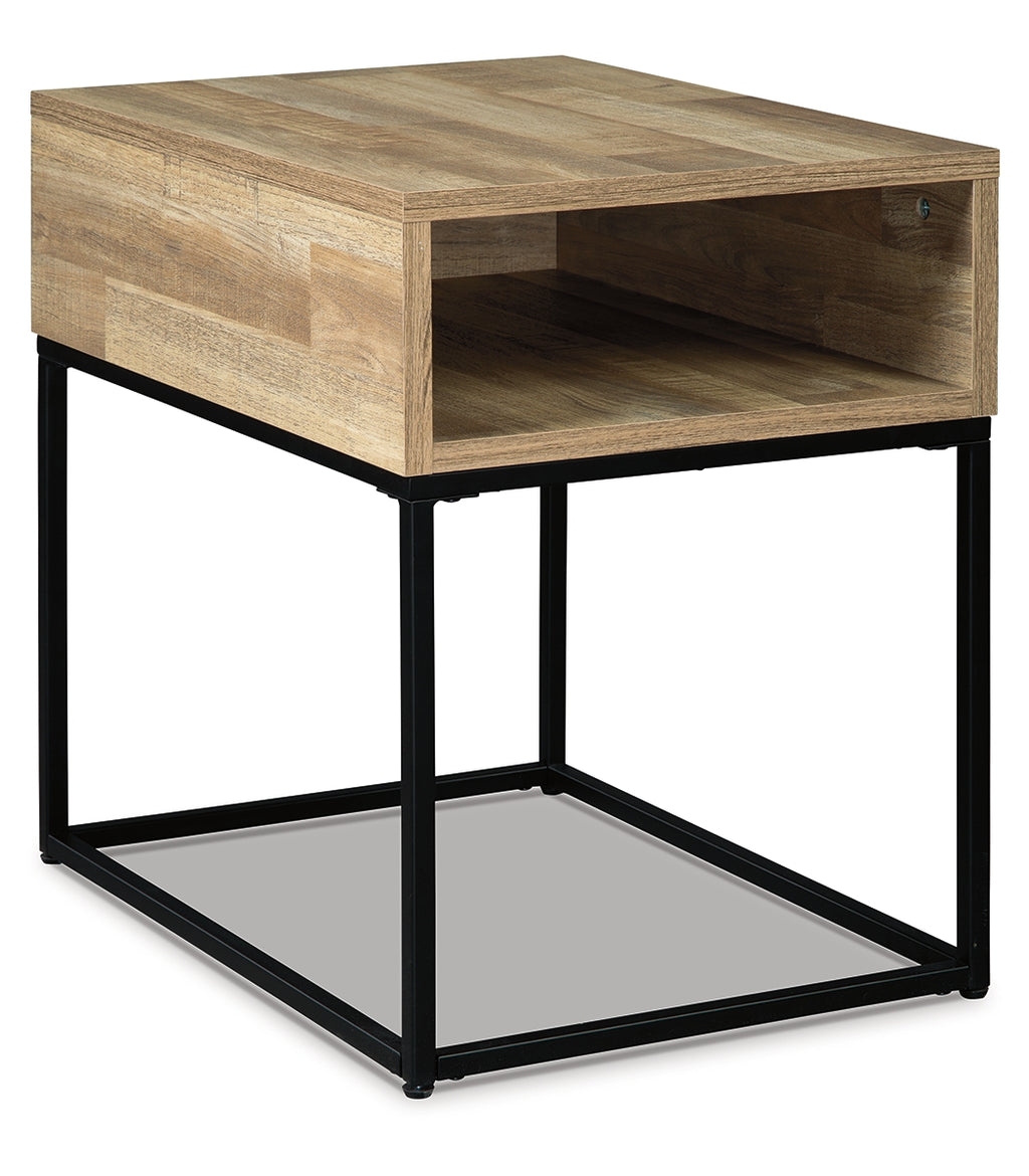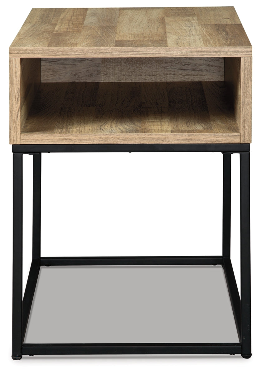 This cool end table offers a fresh take on urban style with a casual design and replicated butcher block finish. The metal base elevates the table and provides open space to add a lightness to your room.