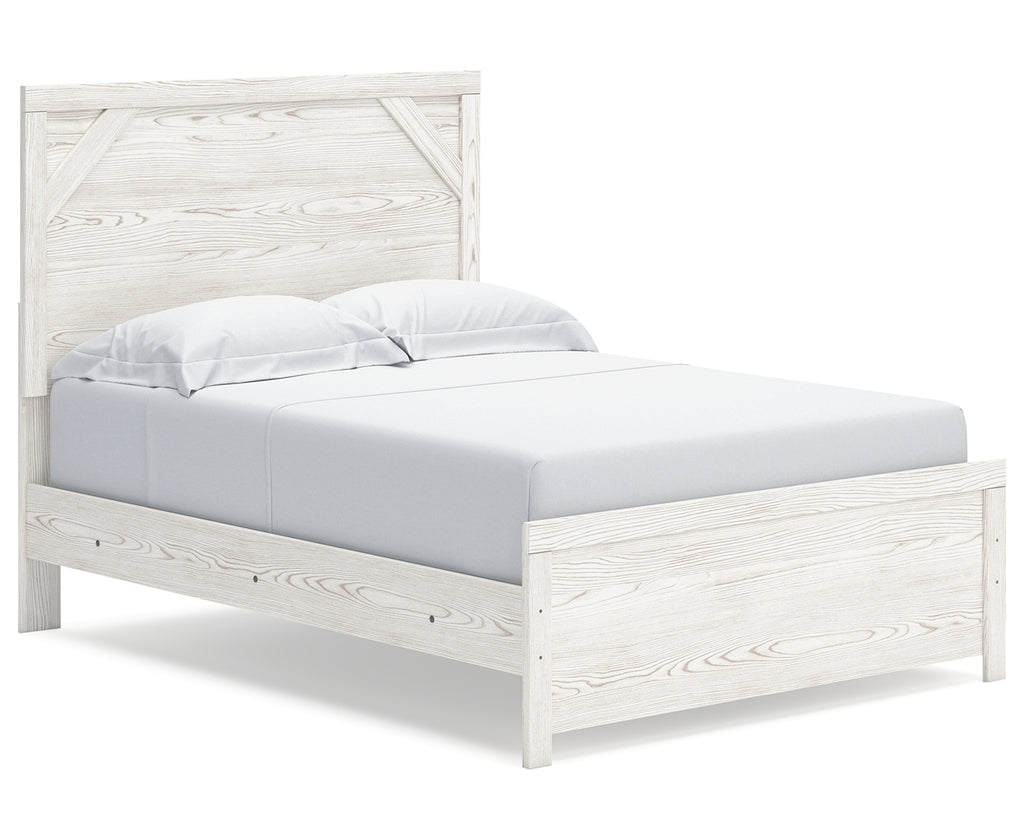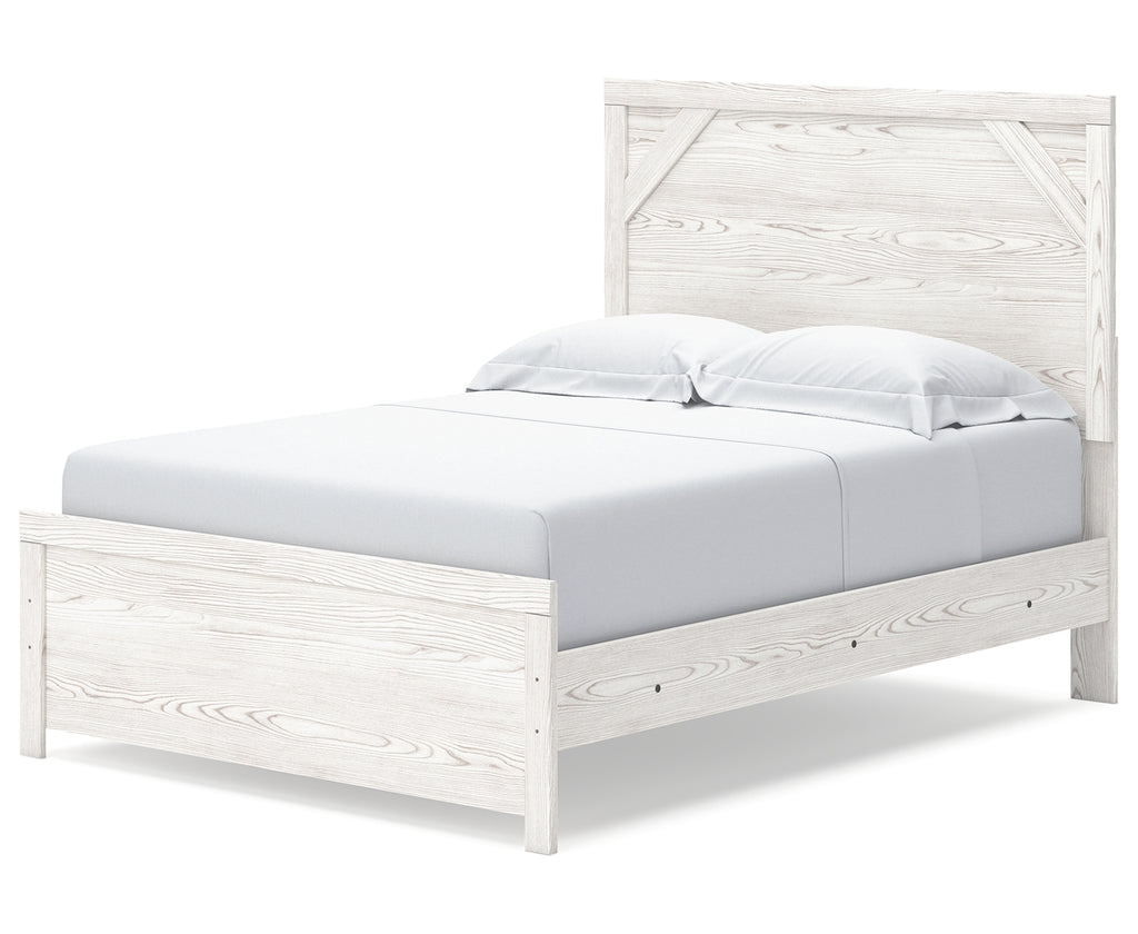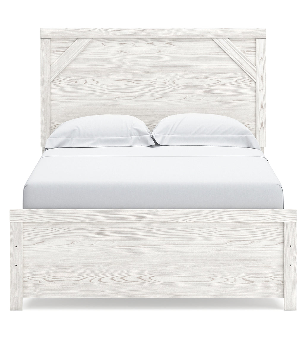 Cool, clean and casually modern. This full panel bed’s wispy whitewash finish sets the tone for your calming sanctuary. Framed elements and cross-brace accents add dimension and authenticity to the bed’s simply stunning profile. | Product Features