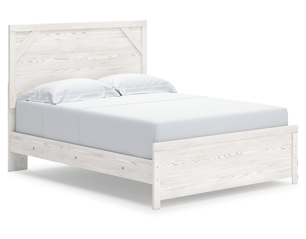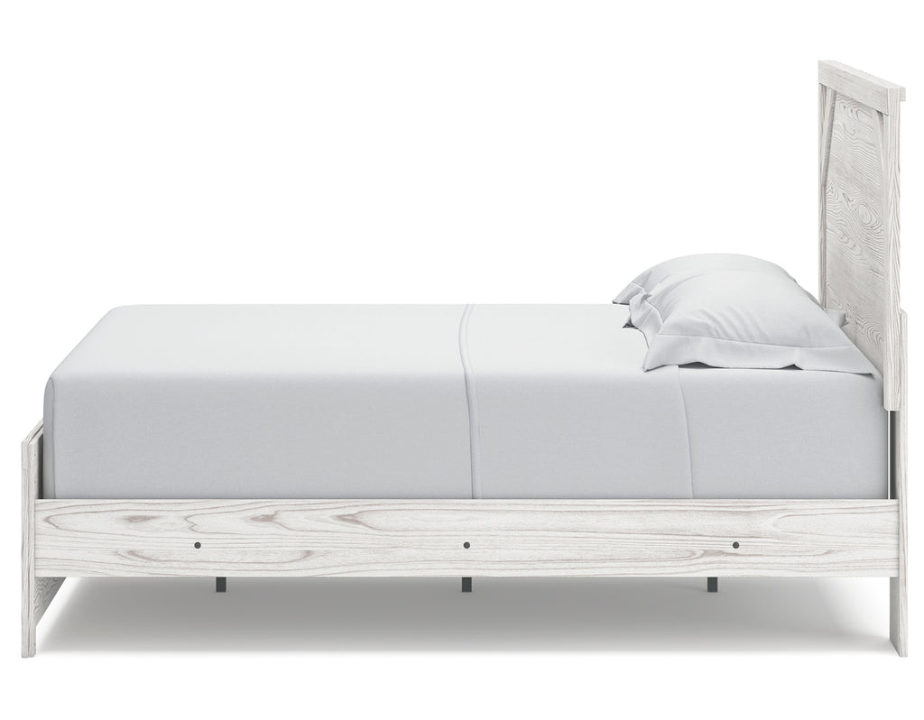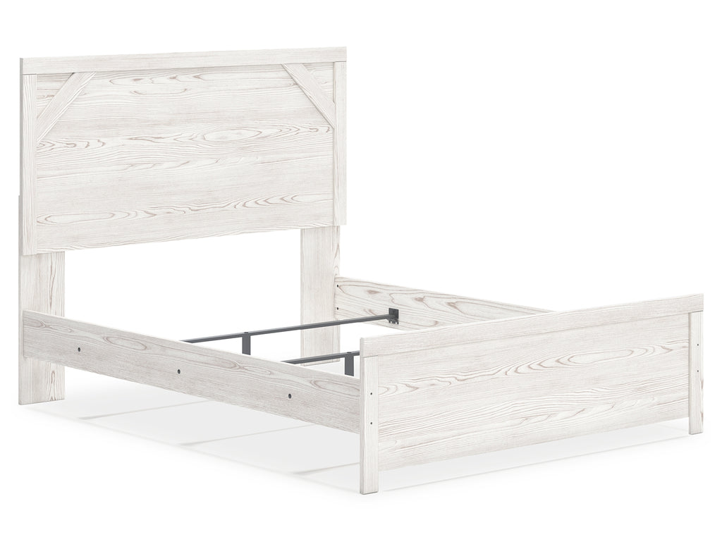 Cool, clean and casually modern. This queen panel bed’s wispy whitewash finish sets the tone for your calming sanctuary. Framed elements and cross-brace accents add dimension and authenticity to the bed’s simply stunning profile. | Product Features