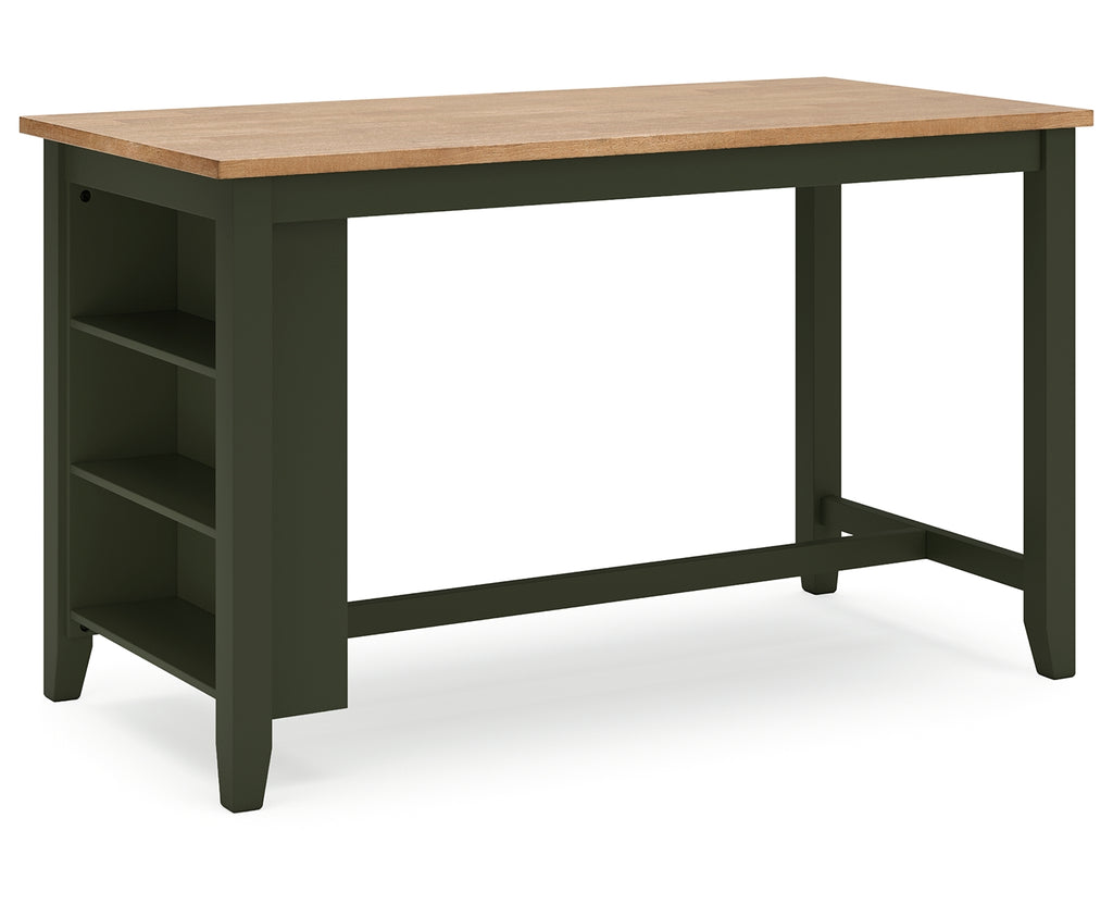 Complement your home’s simply relaxed sensibility with this counter height dining table. A charming green hue offers a chic contrast to the natural wood tone, for a casual look that vibes with a variety of aesthetics. Built-in storage shelves keep kitchen and work accessories easily accessible. Whether you're sipping morning coffee, settling in for dinner or working from home, this chair is smartly designed for everyday comfort and style. | Product Features