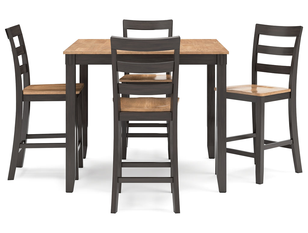 Who says a simple design can't be eye-catching? This counter height dining table with bar stools has a casually cool style, yet it still turns heads. The two-tone table and bar stools are effortlessly handsome. And the ladderback bar stools cater to your comfort with contoured seats. Aside from dining, this set's relaxed simplicity is perfect for homework, morning coffee or checking all those emails. | Product Features