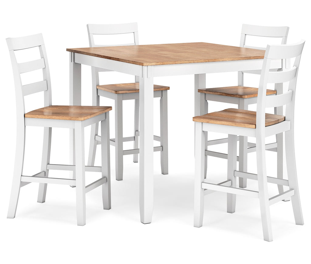 Complement your home’s simply relaxed sensibility with this counter height dining table and bar stools. A crisp white hue offers a chic contrast to the natural wood tone, for a neutral look that vibes with a variety of aesthetics. Whether you're sipping your morning coffee, settling in for dinner or working from home, this set is smartly designed for everyday comfort and style. | Product Features