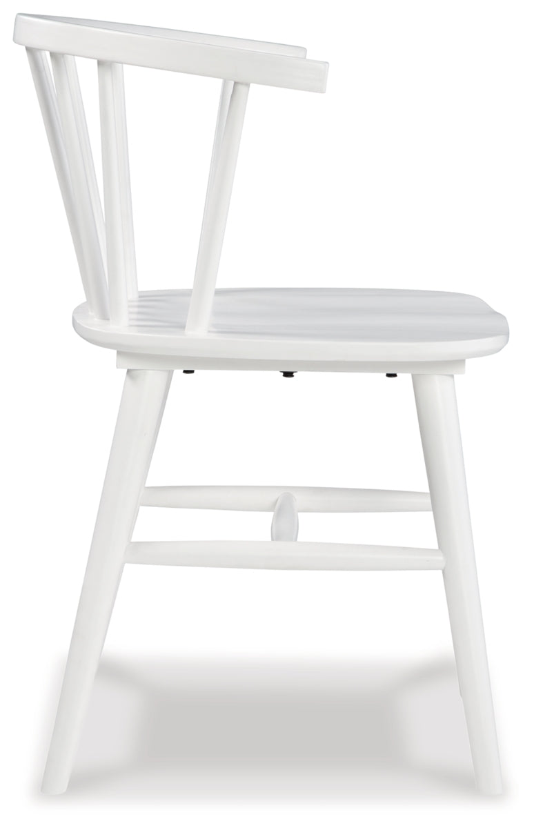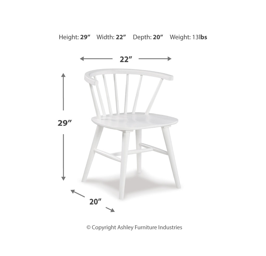 Bring light to your dining area with clean lines and a bright, white finish. The dining room chair sports a low spindle back with turned legs for beautiful simplicity. This functional piece marries minimalism with big style for a delightful combination. | Product Features
