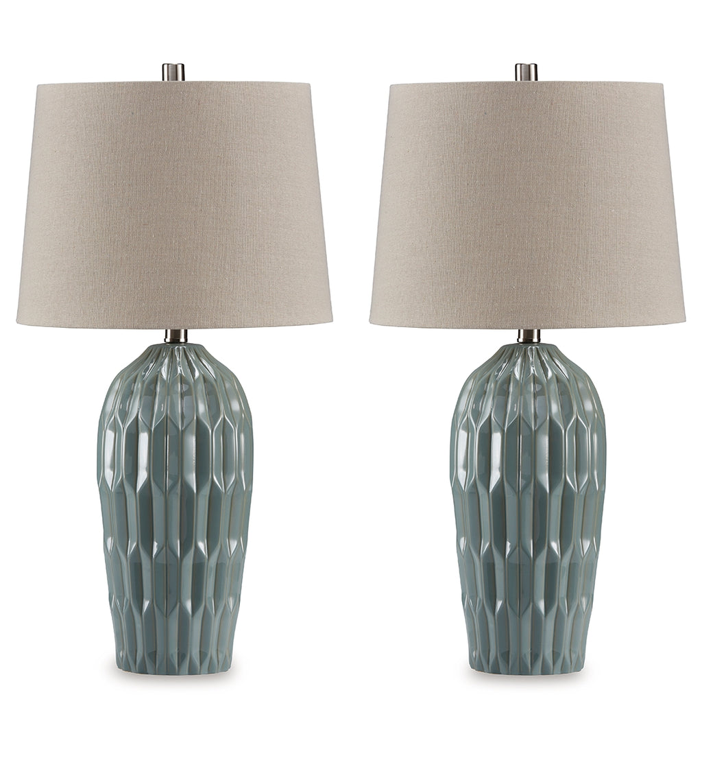 Contemporary with a retro vibe, this table lamp is hard to miss. A dimensional design on the ceramic base shines a bright light on sophisticated style in the bedroom, entryway or your favorite spot. | Product Features
