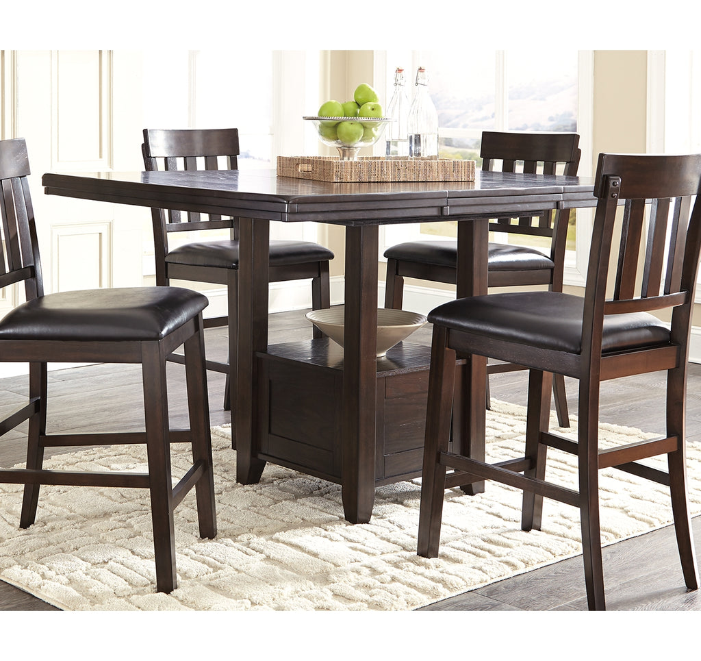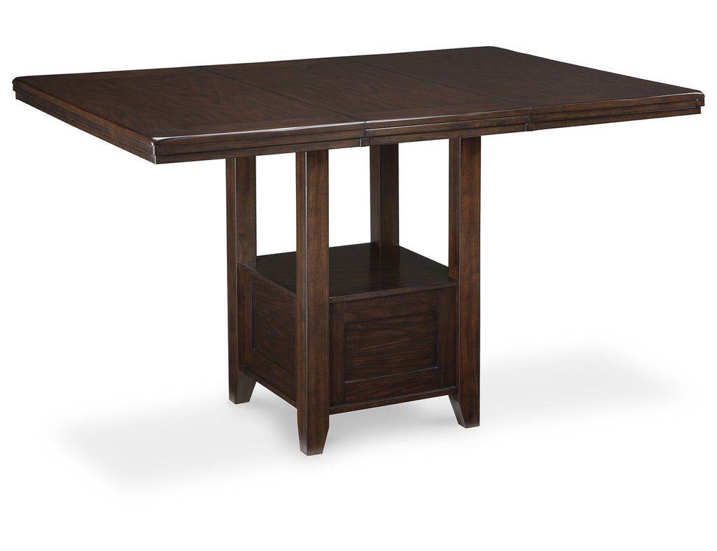 Modern sophistication, beautifully served. This counter height extension table raises the bar with a simply striking design and rich, dark finish. Removable leaf stretches the possibilities. Built-in shelf stacks up as additional storage space. | Product Features