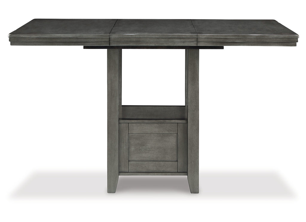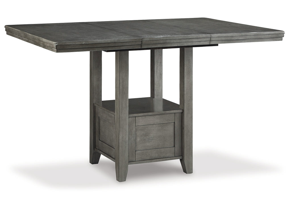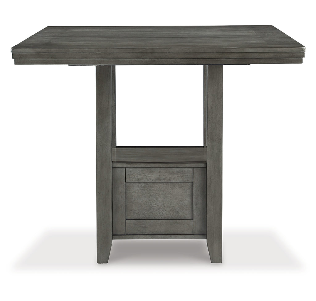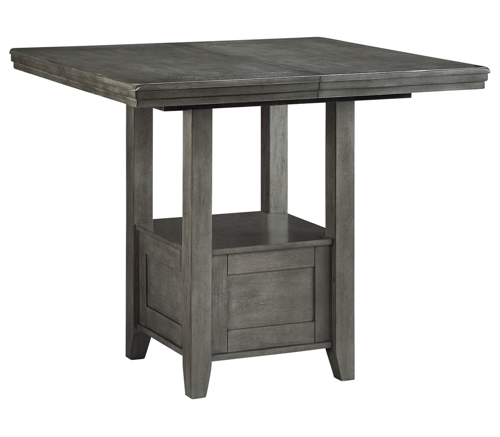 Cool and on-trend. This counter height extension table sports an antiqued gray color for a contemporary-yet-casual feel. The table features a storage base and removable leaf for extra seating room, making it a breeze to clear off clutter and expand your table space. Dining with friends and family has never been so stylish. | Product Features
