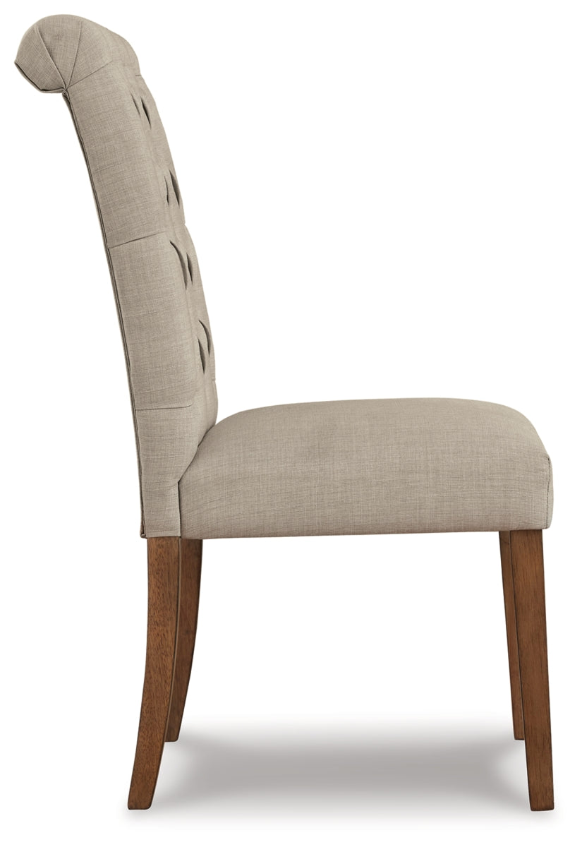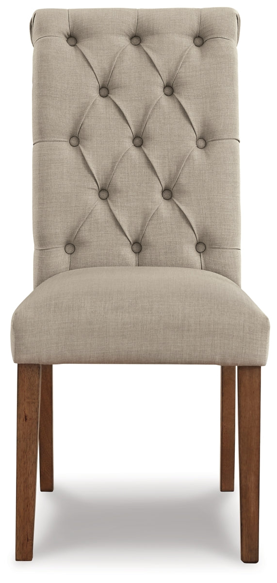 Simple sophistication is closer than ever with this dining chair. The chair is delightfully cozy with its beige upholstered seat and carefully tailored button-tufted back, while the rolled top rail provides a little extra flair. The legs are finished in a neutral light walnut color for the finishing touch to this charming chair. | Product Features