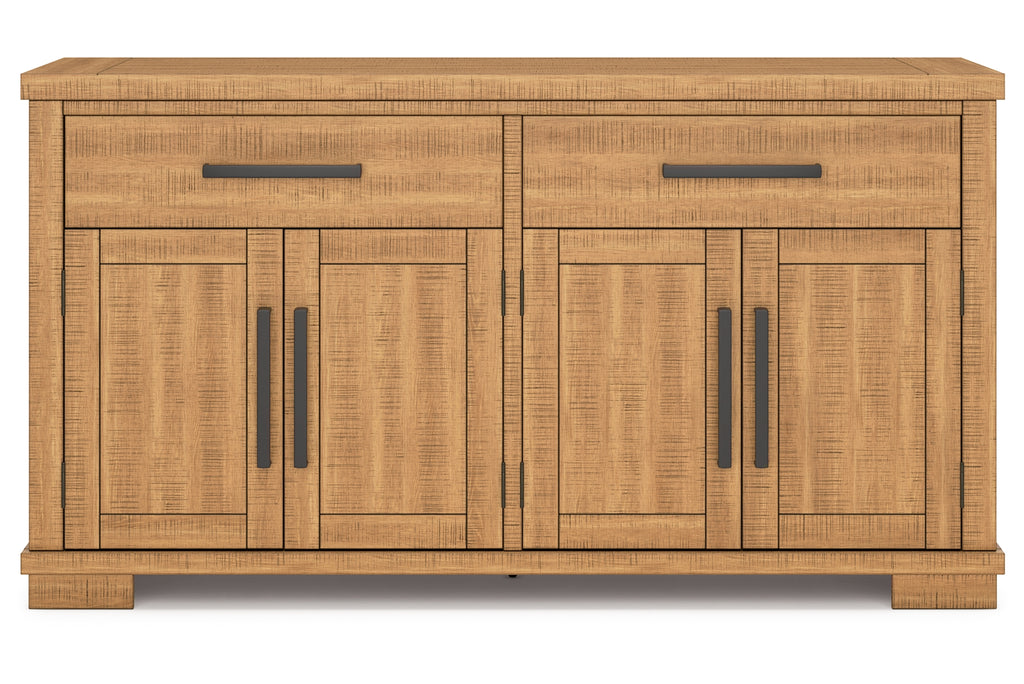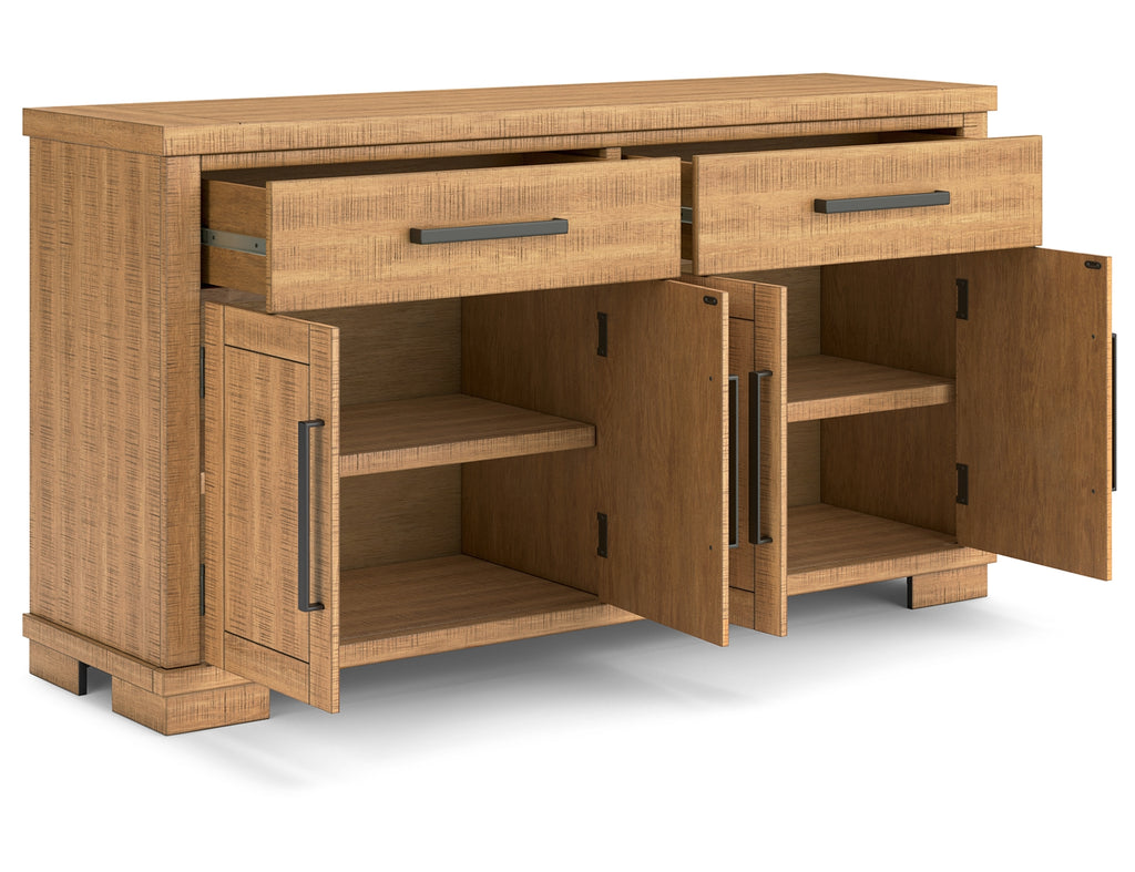 This dining server is a favorite for casual rustic interiors. Offering plenty of storage, it’s your answer for everyday living and impromptu entertaining. And the cabinets with adjustable shelves? Deliciously versatile and functional. | Product Features