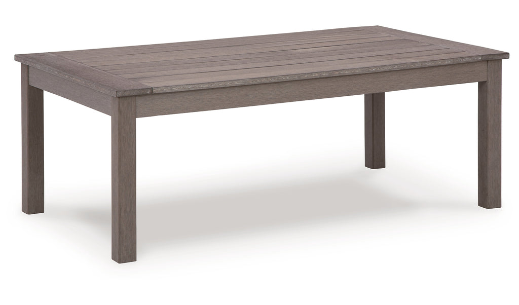 This coffee table is a stylish outdoor piece with staying power. Built for longevity with Weatherwood, a synthetic material with the appearance of wood, it indulges you in contemporary design without sacrificing durability. Stunning form and can’t-miss function—with this table, endless days in the shade await. | Product Features
