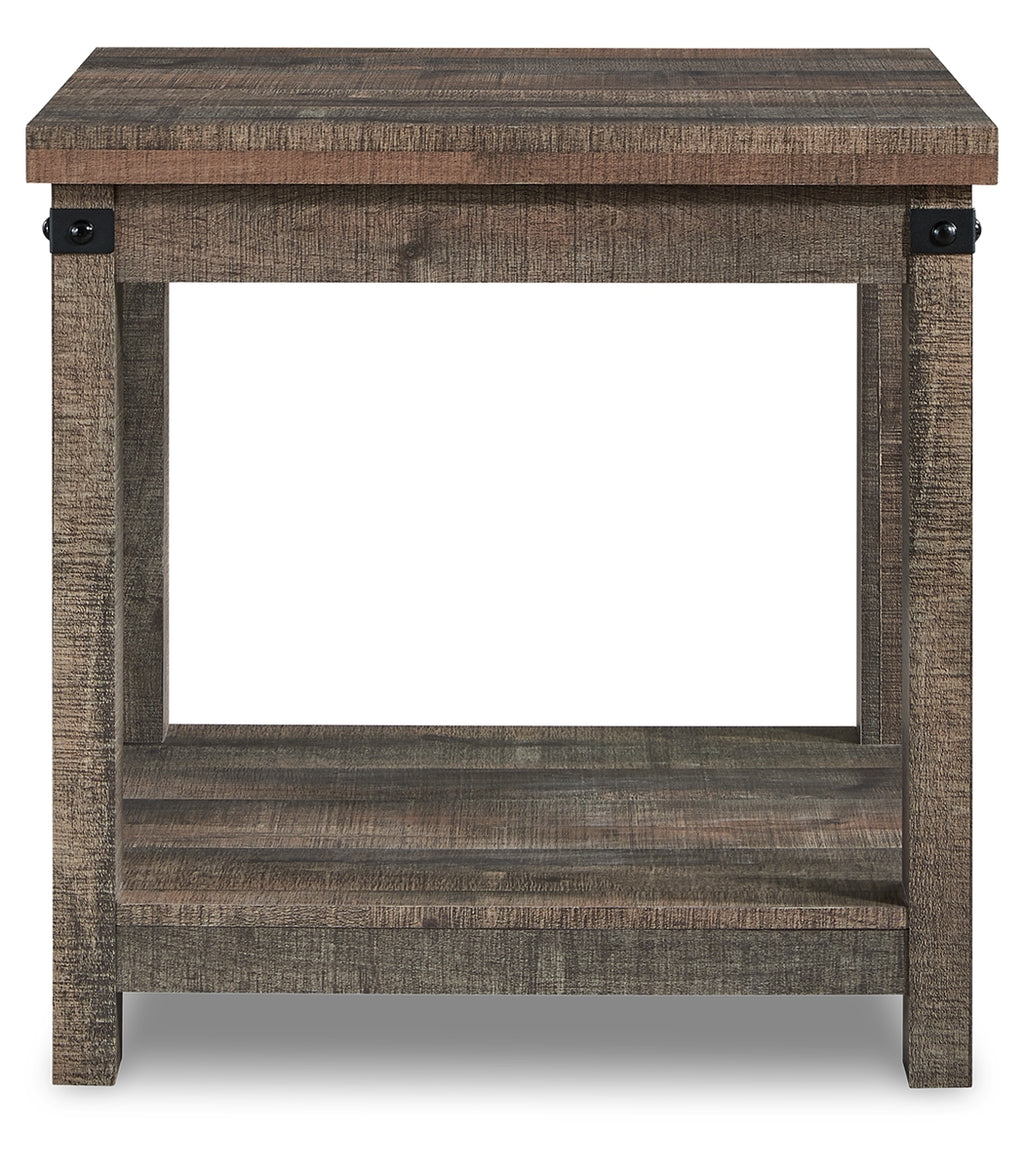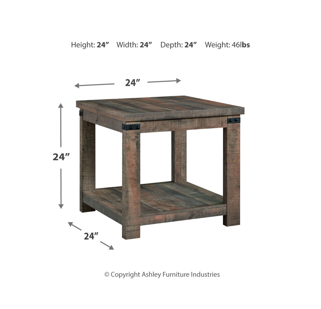 Keep your aesthetic chic and approachable with this charming end table. The piece has an effortless beauty, with a replicated aged barn wood pattern and matte black metal accents adding vintage-inspired elegance. Combining elements of fashion and function, the lower shelf is ideal for displaying decor or holding a storage basket. | Product Features