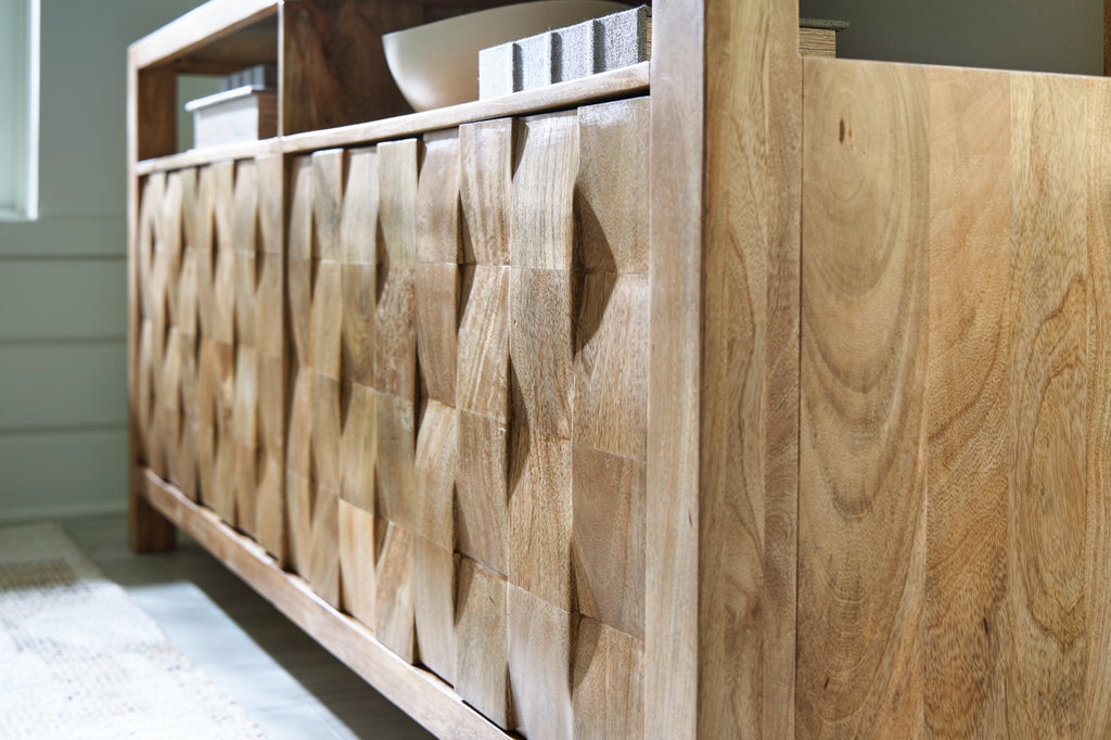 - Made with mango wood solids, engineered wood and veneer