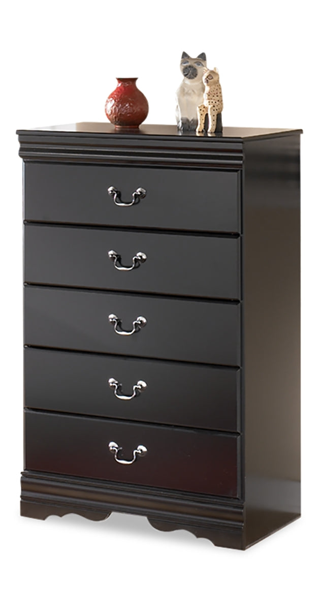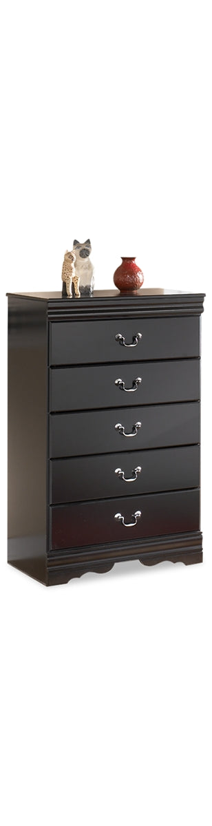 This chest of drawers is the epitome of traditional decor. Louis Philippe-style moulding dates back to the mid-19th century when furnishings were lavish yet somewhat simple. Luxe finish adds a slightly modern touch. Five smooth-glide drawers beautifully accommodate your wardrobe. |