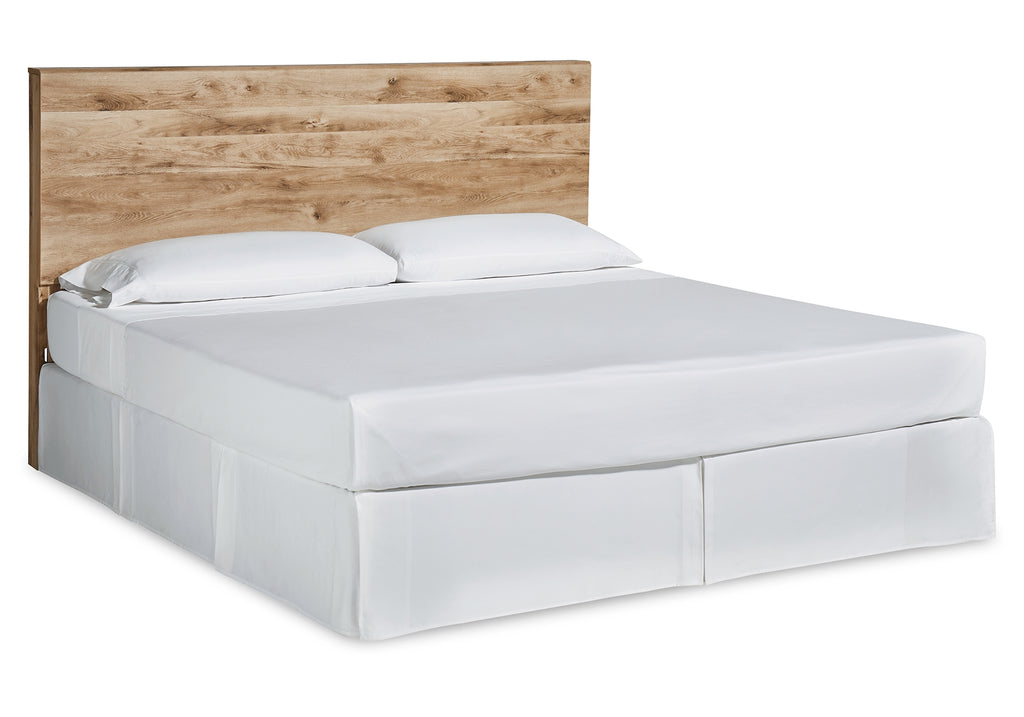 Inspired by natural beauty, refined to perfection. This king panel headboard brings cozy outdoor vibes to your bedroom with its warm and inviting golden rustic finish. Simple and streamlined, this piece adds a subtle touch of authentic style to your space. | Product Features