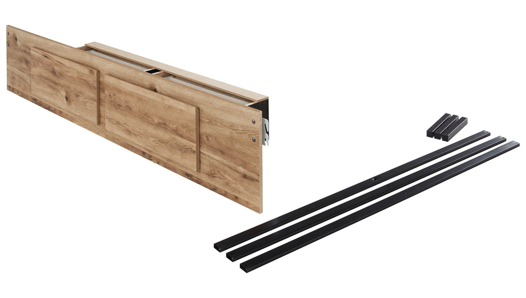This queen/king under bed storage is made with engineered wood (MDF/particleboard/plywood) and decorative laminate. Pairs with other items in the series to make a bed kit.