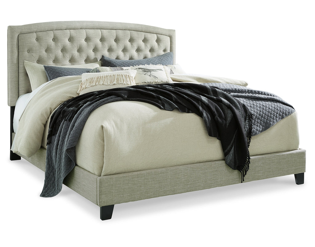 Set the scene for a heavenly bedroom retreat—at a down-to-earth price—with this queen upholstered bed. Light gray upholstery gracing the arched tufted headboard sports a textural weave that feels fresh and now. Footboard and rails are also dressed in cool gray tones. | Product Features