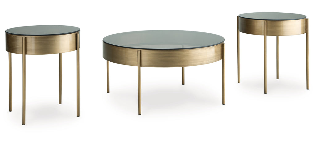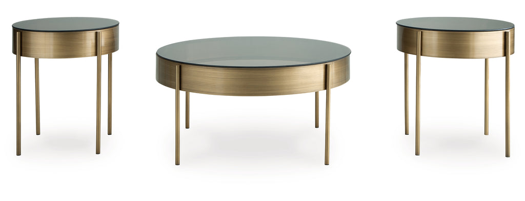 This table set combines metal and glass materials for a stylish and functional home accent. Tubular legs provide a sturdy base, while the aged brass-tone metal apron adds an elegant touch. A black tempered glass tabletop offers both sleek aesthetics and durability. With a modern design and high-quality craftsmanship, the set is a wonderful display of great taste. | Product Features