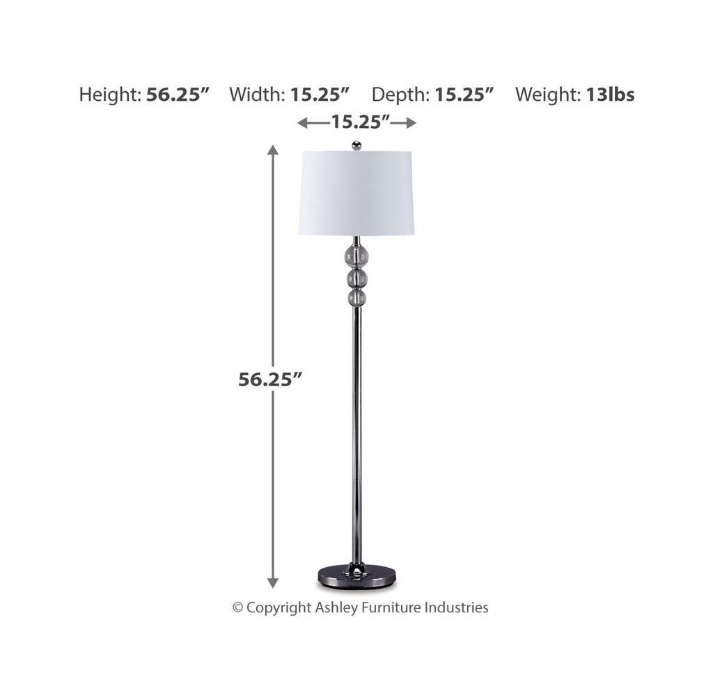 Have a ball beautifying your space with this designer floor lamp. If you’re looking for a clean, ultra-contemporary aesthetic, you’re sure to find this floor lamp’s blend of crystal and chrome-tone metal so delightful. Simply chic drum shade is the perfect complement. | Product Features